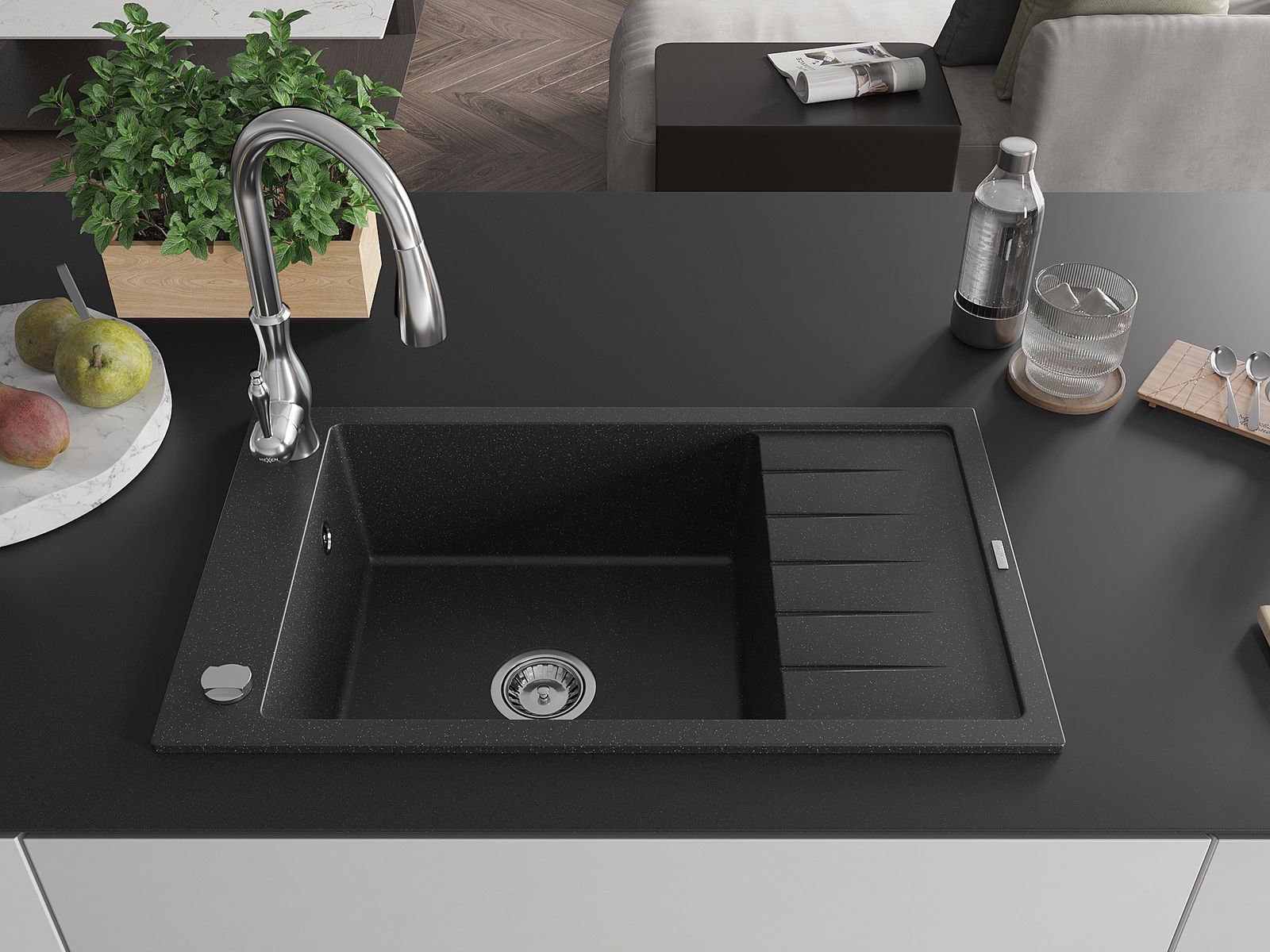 Mexen Elias νεροχύτης γρανίτη 1-θαλάμου με στραγγιστήρι και μπαταρία