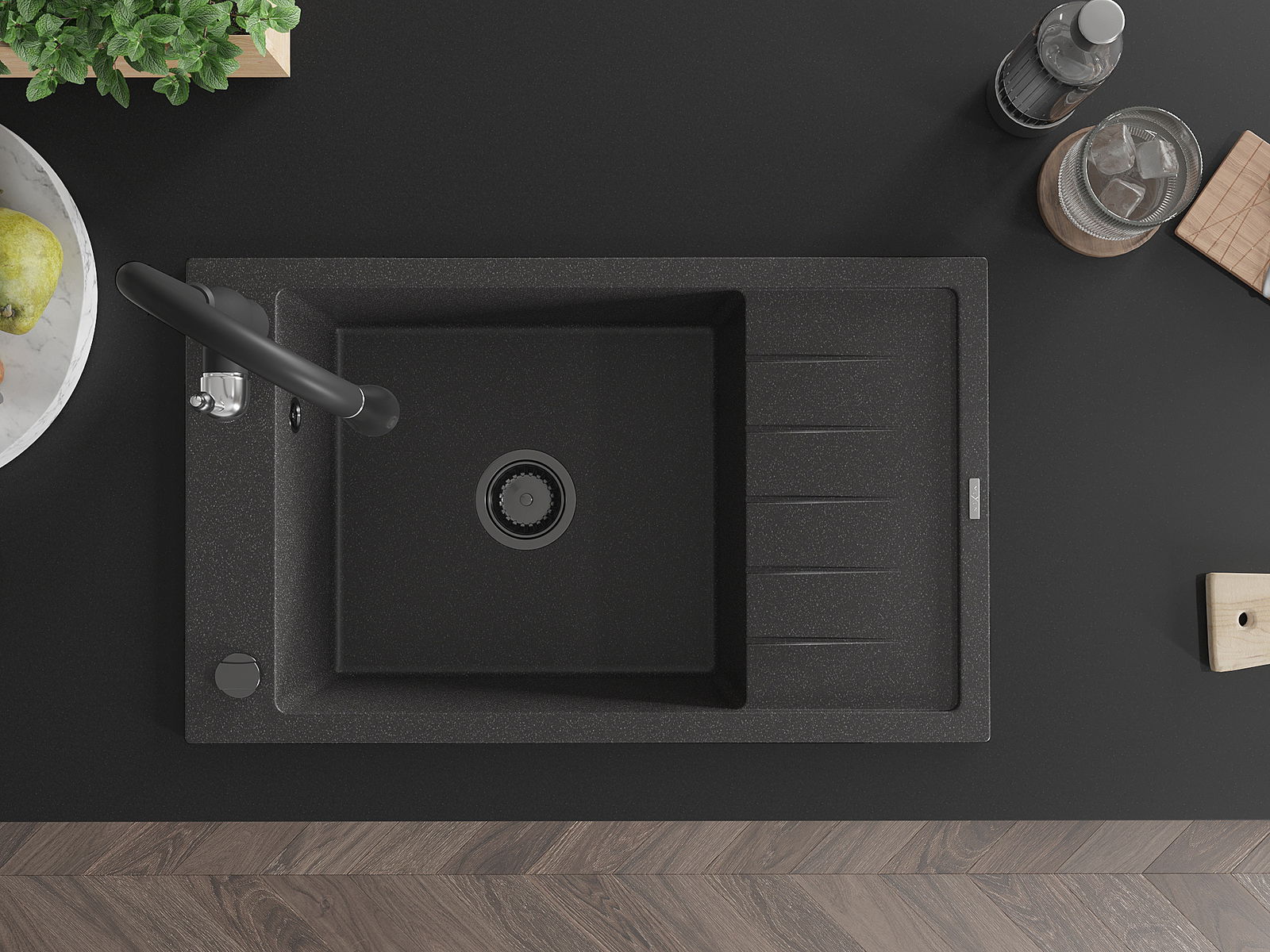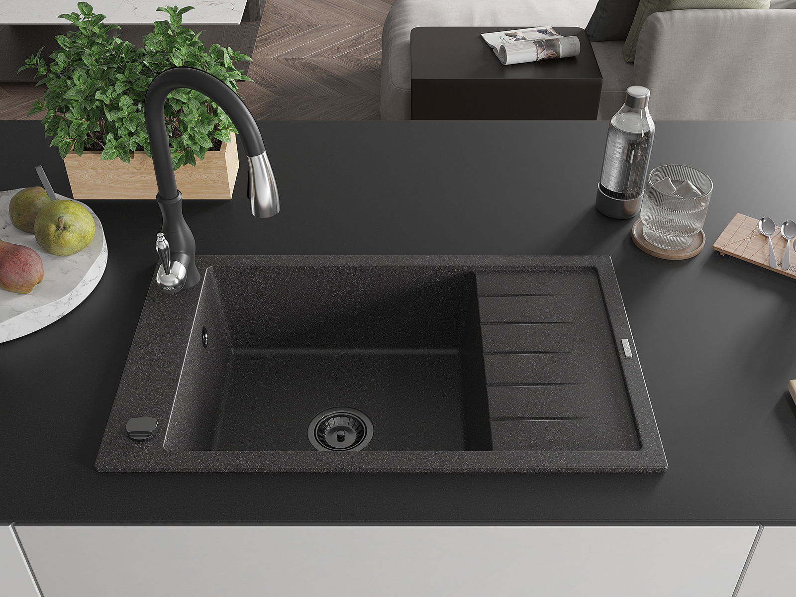 Mexen Elias νεροχύτης γρανίτης 1-διαμερίσματος με αποστράγγιση και