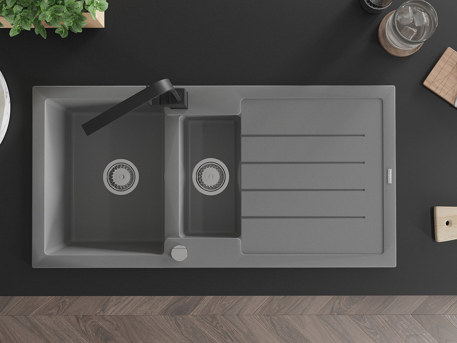 Ο νεροχύτης κατασκευάστηκε από υψηλής ποιότητας γρανίτη. Αποτελεί μια κομψή, και κυρίως πρακτική προσθήκη για κάθε κουζίνα, ανεξάρτητα από το στυλ της. Η υψηλή ποιότητα και η αντοχή του γρανίτη εξασφαλίζουν πολυετή χρήση.