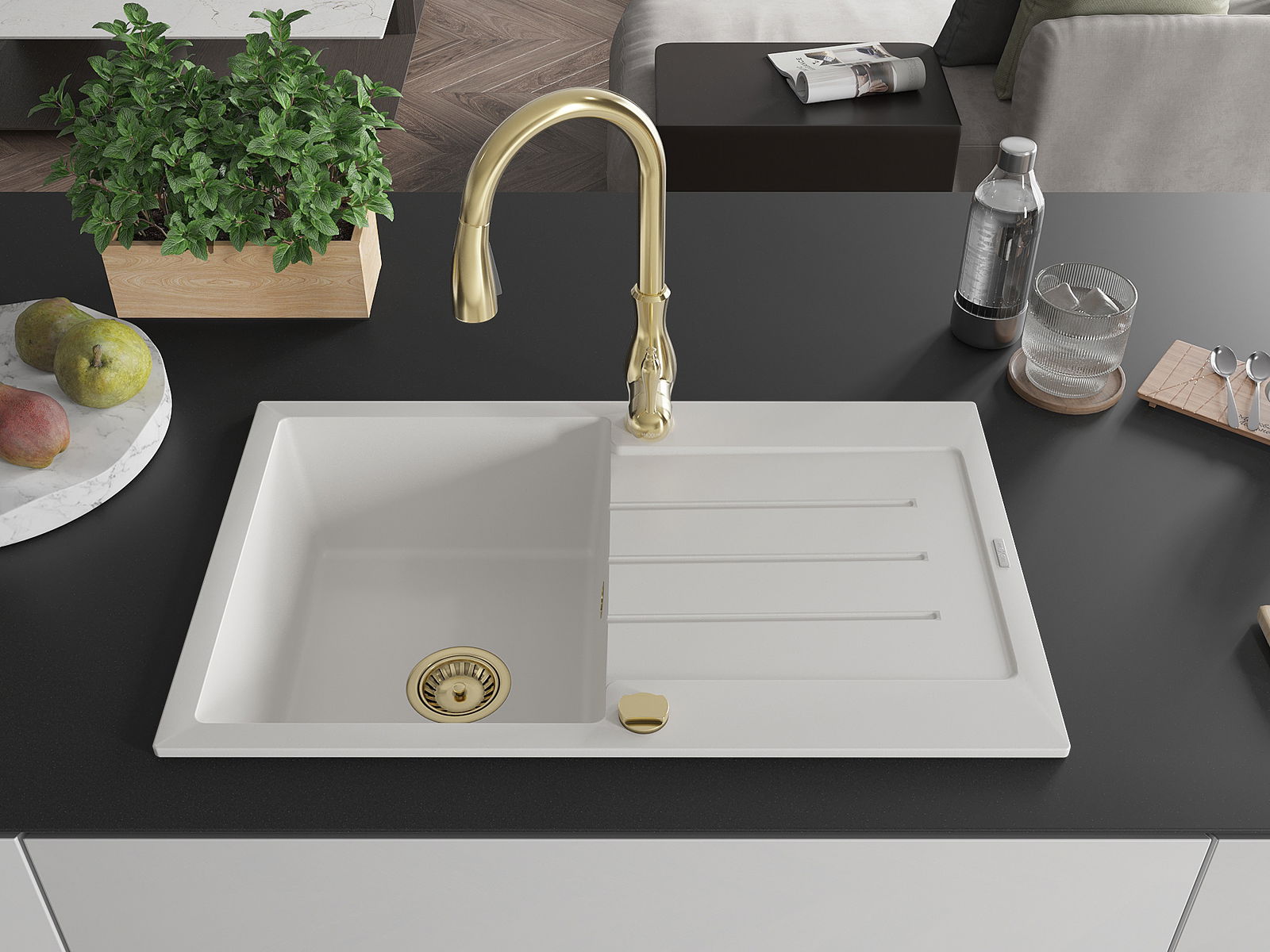 Ο νεροχύτης κατασκευάστηκε από υψηλής ποιότητας γρανίτη. Αποτελεί μια κομψή, και κυρίως πρακτική προσθήκη για κάθε κουζίνα, ανεξάρτητα από το στυλ της. Η υψηλή ποιότητα και η αντοχή του γρανίτη εξασφαλίζουν πολυετή χρήση.