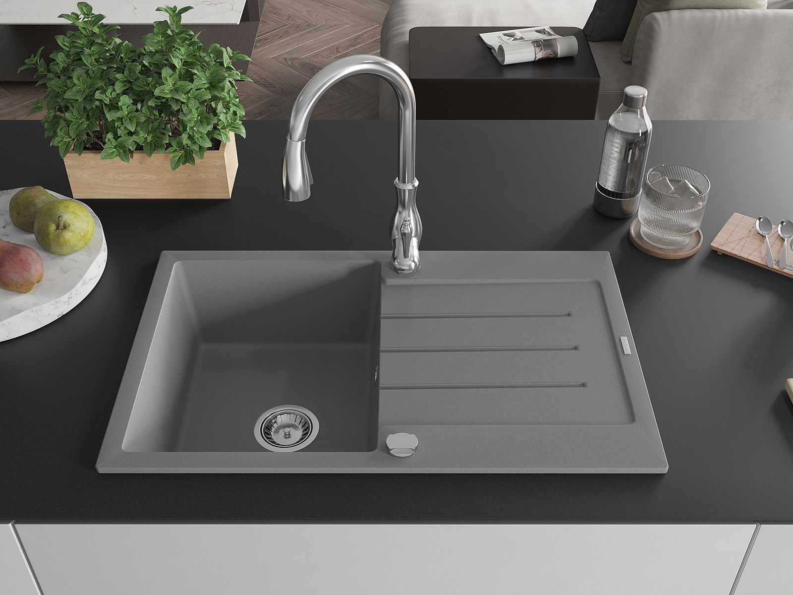 Ο νεροχύτης κατασκευάστηκε από υψηλής ποιότητας γρανίτη. Αποτελεί μια κομψή, και κυρίως πρακτική προσθήκη για κάθε κουζίνα, ανεξάρτητα από το στυλ της. Η υψηλή ποιότητα και η αντοχή του γρανίτη εξασφαλίζουν πολυετή χρήση.