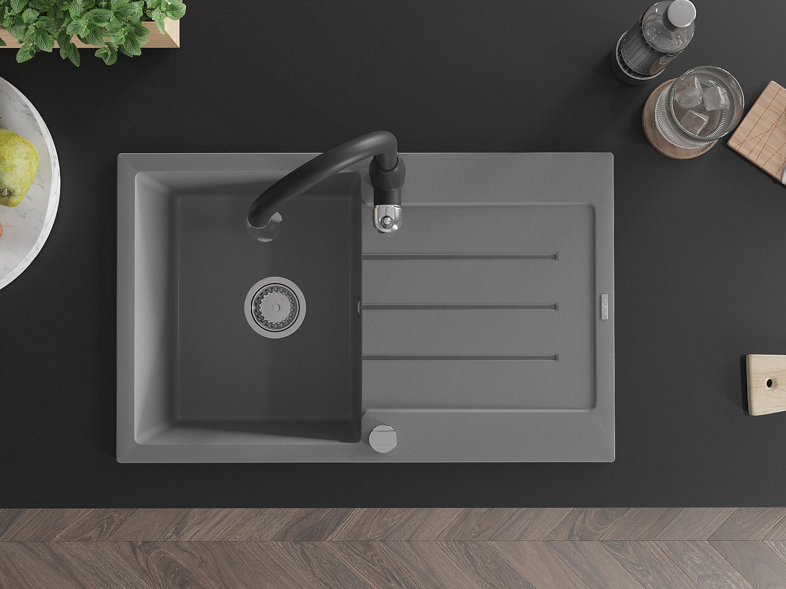 Ο νεροχύτης κατασκευάστηκε από υψηλής ποιότητας γρανίτη. Αποτελεί μια κομψή, και κυρίως πρακτική προσθήκη για κάθε κουζίνα, ανεξάρτητα από το στυλ της. Η υψηλή ποιότητα και η αντοχή του γρανίτη εξασφαλίζουν πολυετή χρήση.