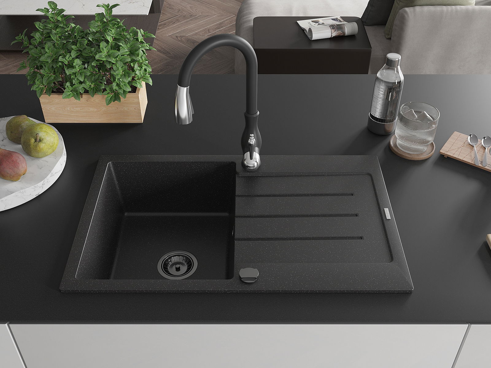 Mexen Bruno νεροχύτης γρανίτης μονός με αποστραγγιστήρα και μπαταρία
