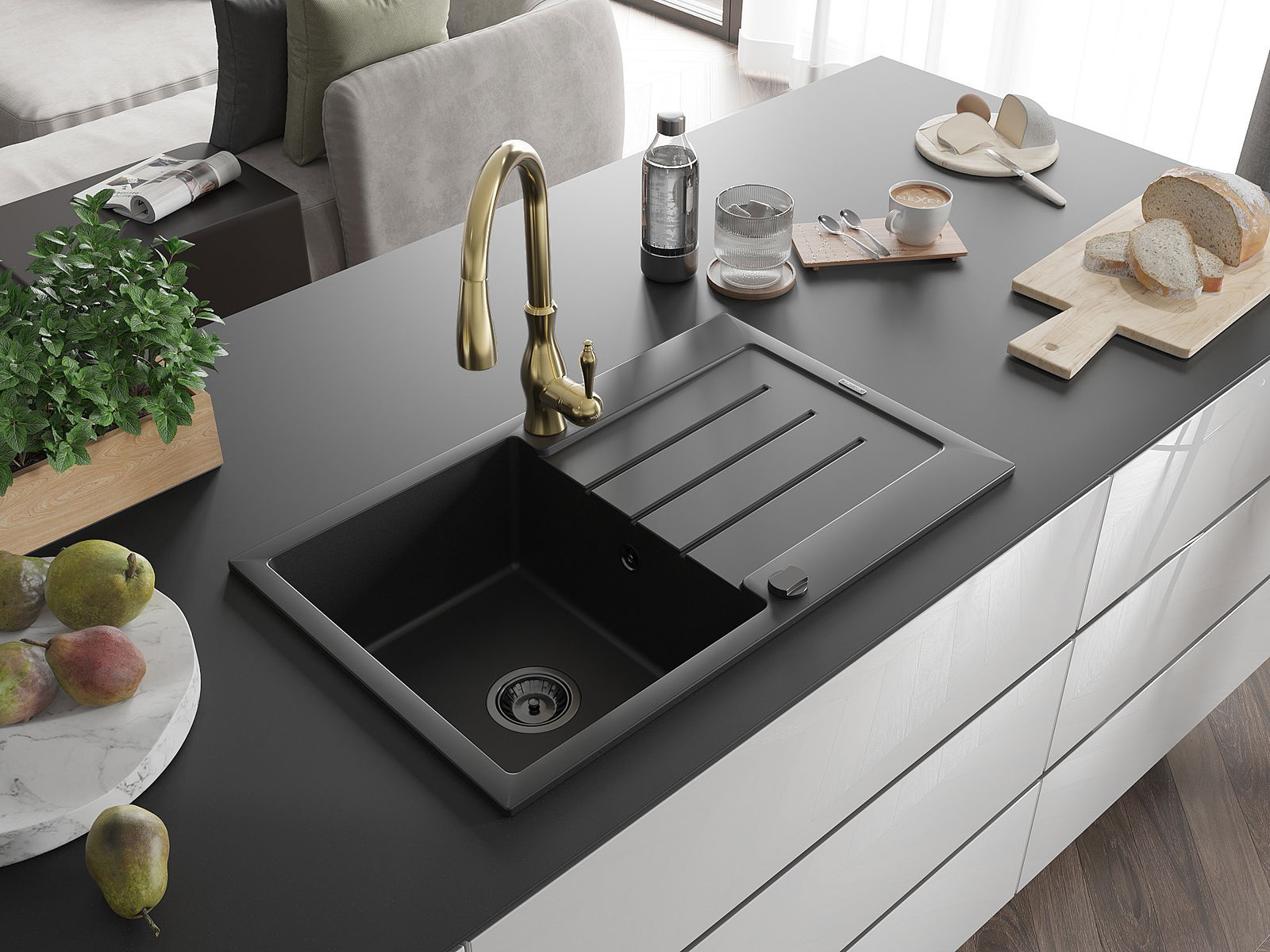 Ο νεροχύτης κατασκευάστηκε από υψηλής ποιότητας γρανίτη. Αποτελεί μια κομψή, και κυρίως πρακτική προσθήκη για κάθε κουζίνα, ανεξάρτητα από το στυλ της. Η υψηλή ποιότητα και η αντοχή του γρανίτη εξασφαλίζουν πολυετή χρήση.