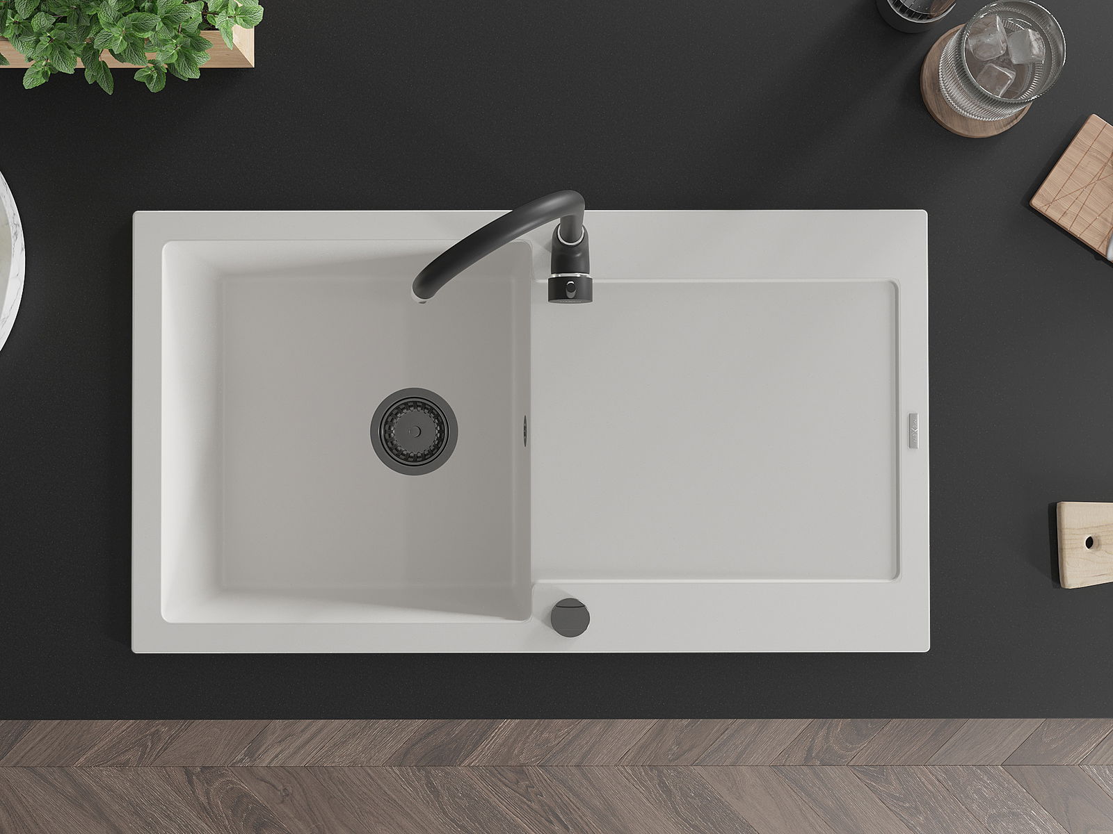Ο νεροχύτης κατασκευάστηκε από υψηλής ποιότητας γρανίτη. Αποτελεί μια κομψή, και κυρίως πρακτική προσθήκη για κάθε κουζίνα, ανεξάρτητα από το στυλ της. Η υψηλή ποιότητα και η αντοχή του γρανίτη εξασφαλίζουν πολυετή χρήση.