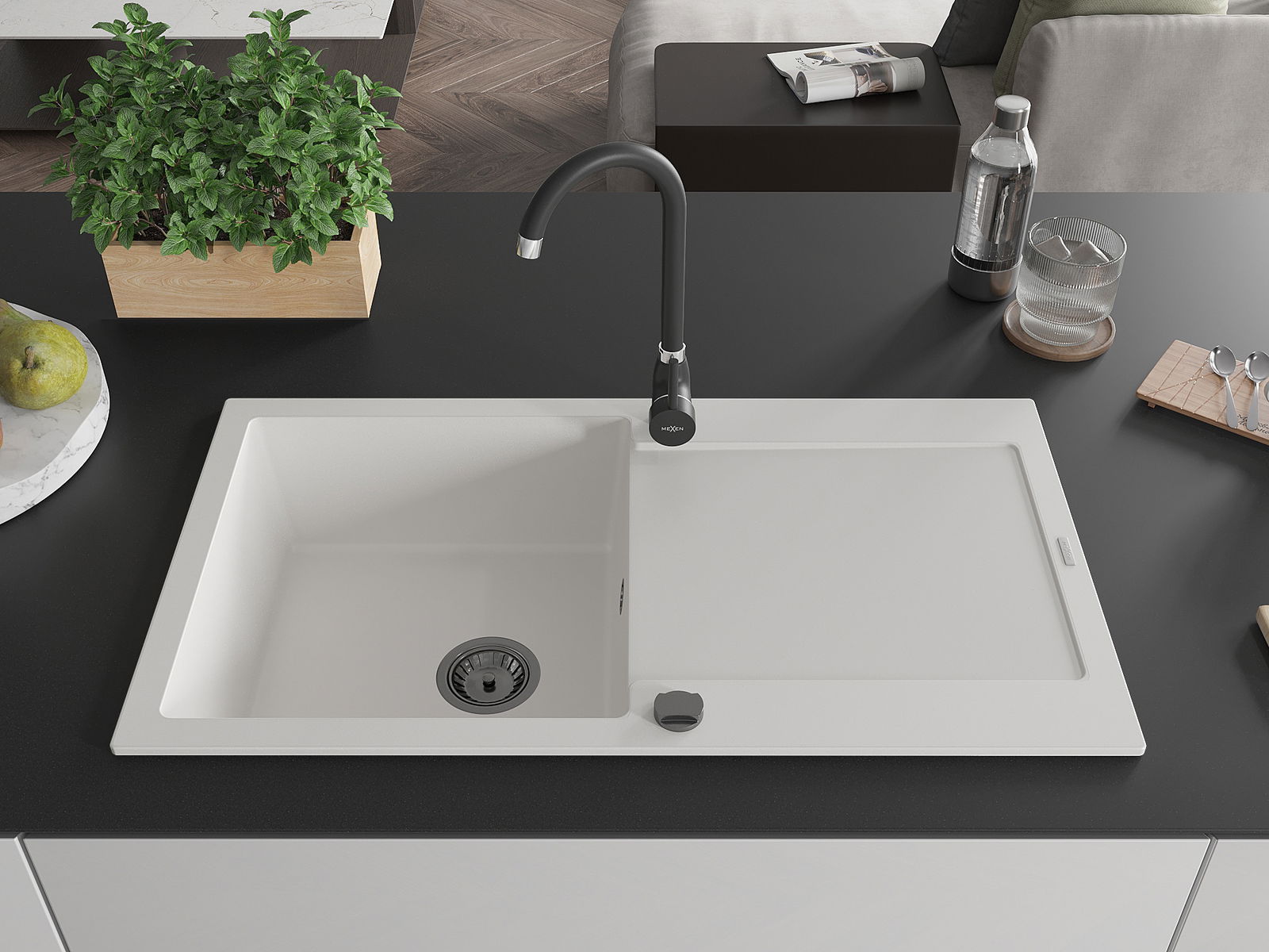 Mexen Leo νεροχύτης γρανίτης 1 διαμερίσματος με πιαστράκι και μπαταρία