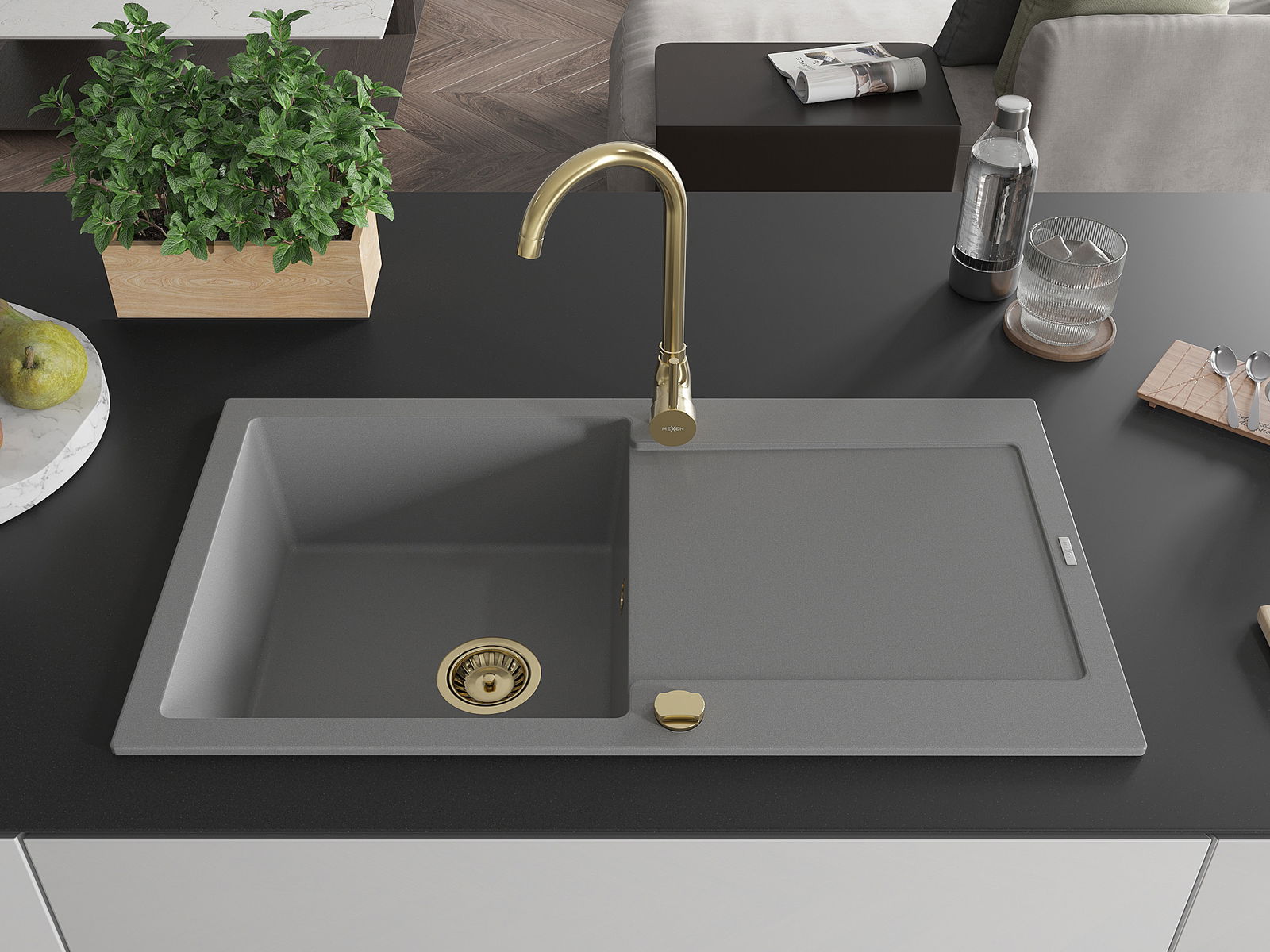 Mexen Leo νεροχύτης γρανίτης 1-θάλαμος με αποστράγγιση και μπαταρία