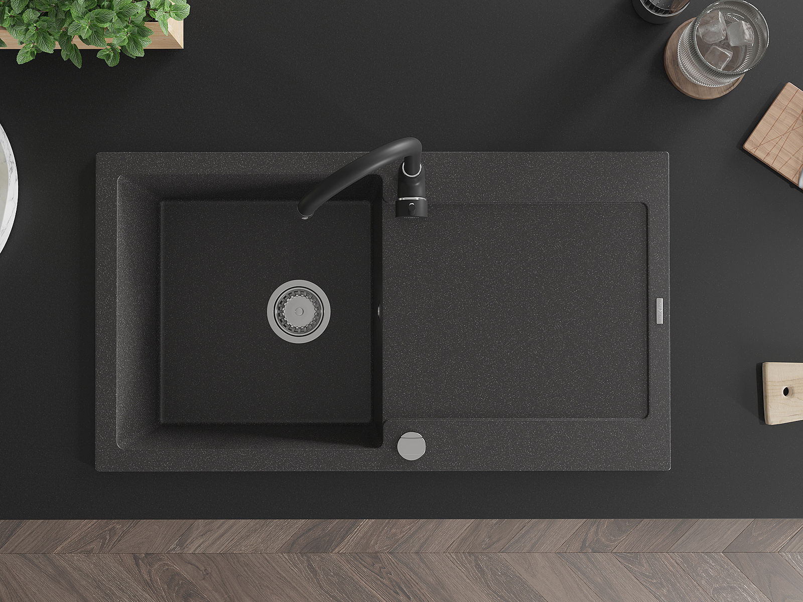 Mexen Leo Νεροχύτης γρανίτης 1-θαλάμου με στραγγιστήρα και κουζινική