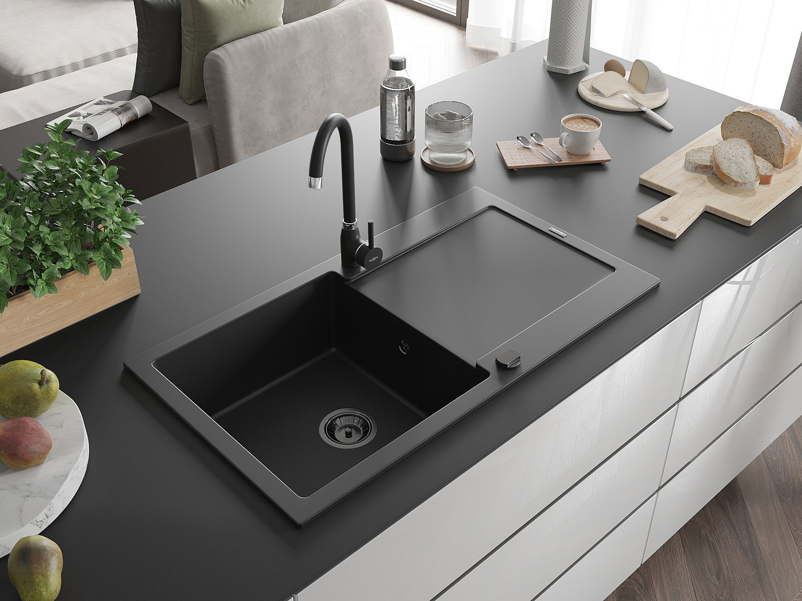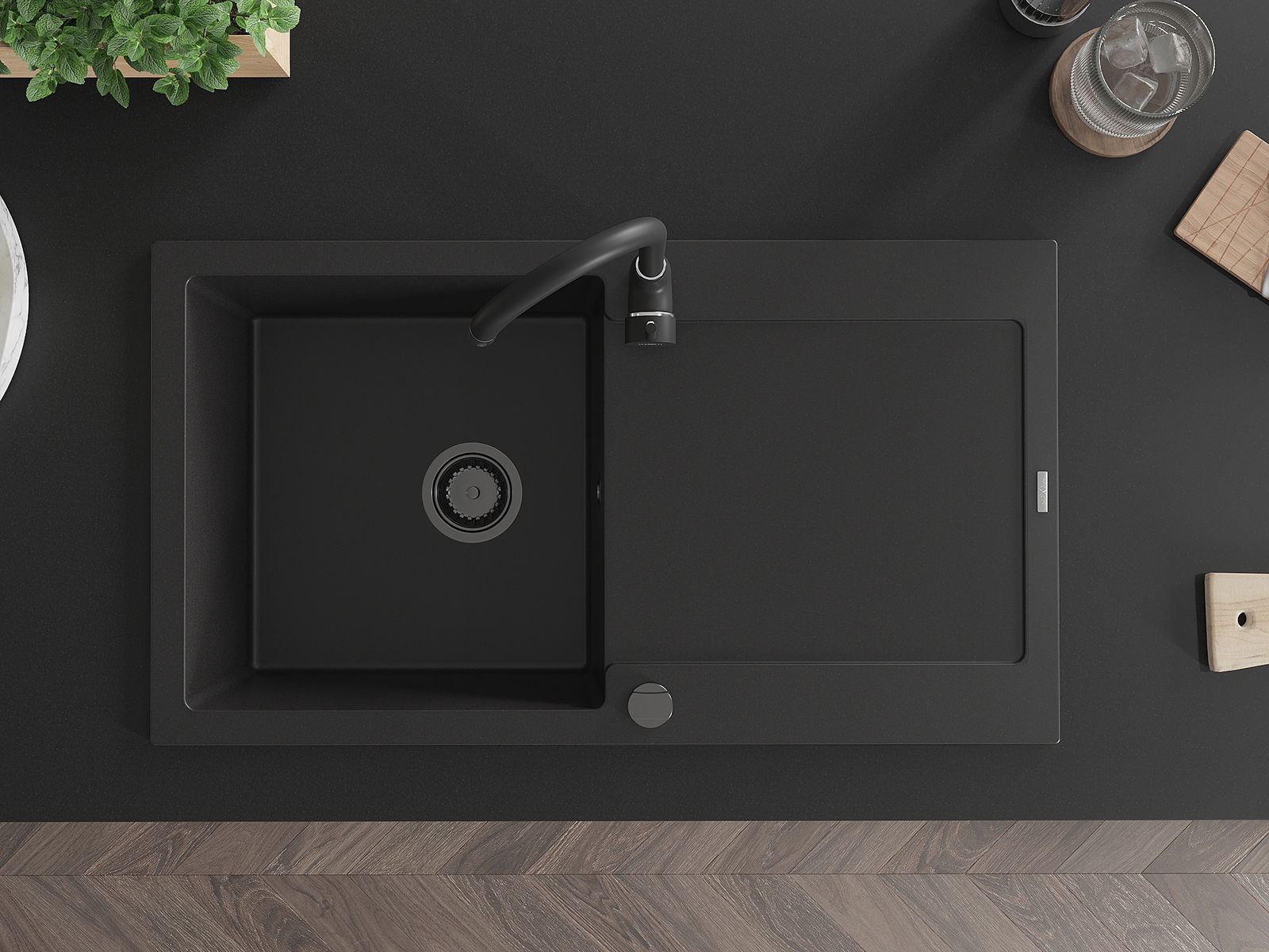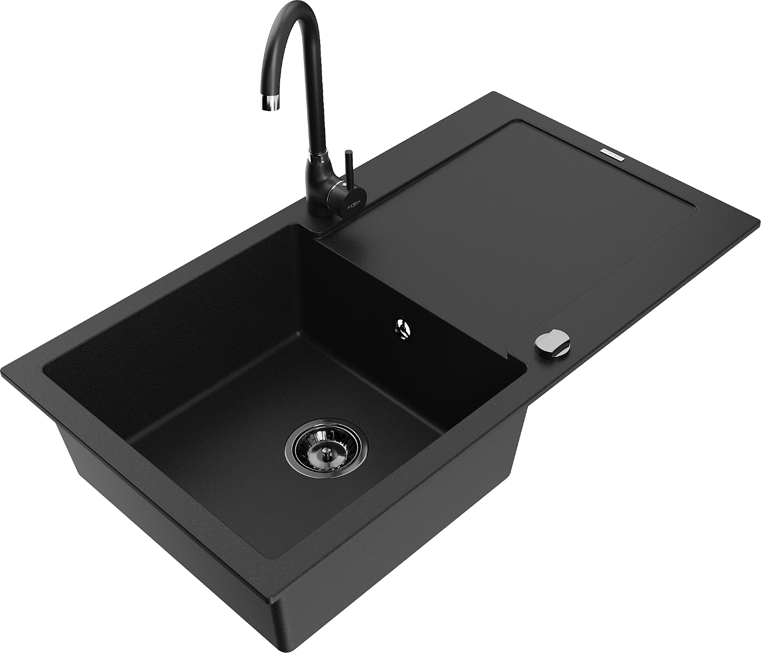 Mexen Leo νεροχύτης γρανίτης 1 θαλάμου με αποστράγγιση και βρύση κουζίνας