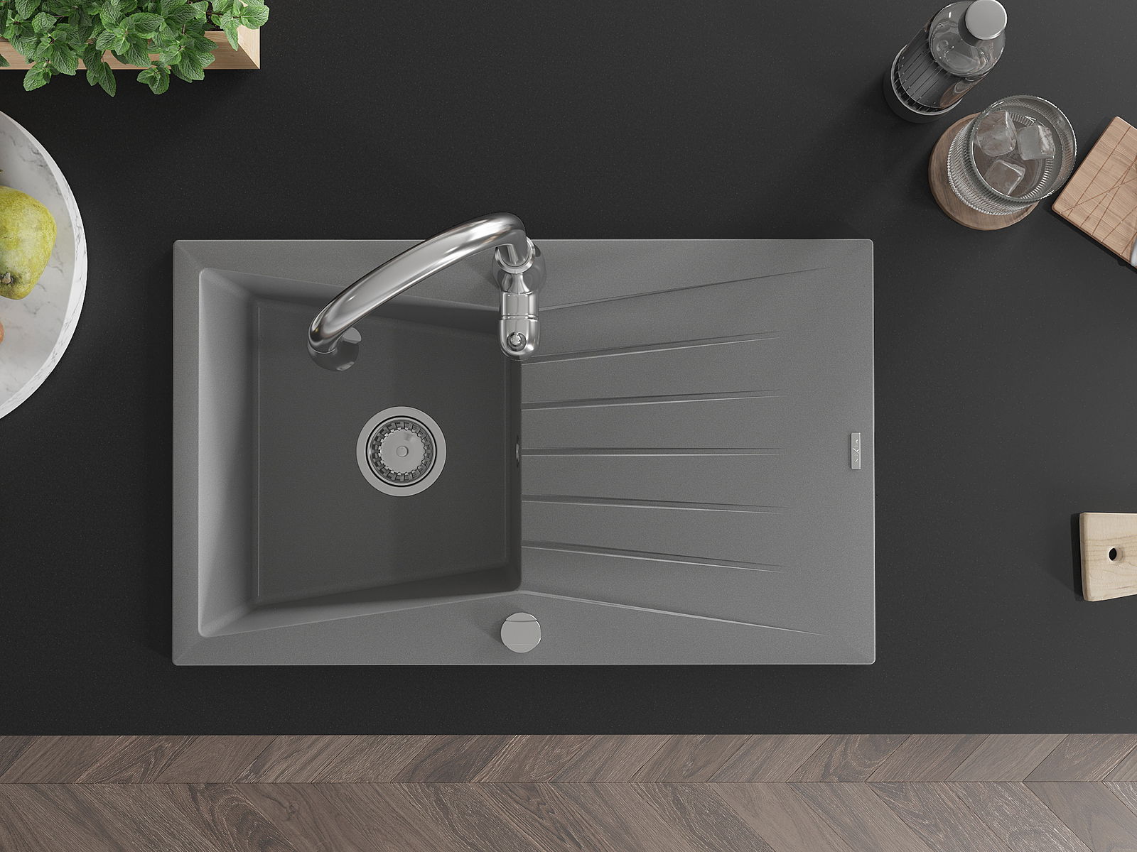 Ο νεροχύτης κατασκευάστηκε από υψηλής ποιότητας γρανίτη. Αποτελεί μια κομψή, και κυρίως πρακτική προσθήκη για κάθε κουζίνα, ανεξάρτητα από το στυλ της. Η υψηλή ποιότητα και η αντοχή του γρανίτη εξασφαλίζουν πολυετή χρήση.