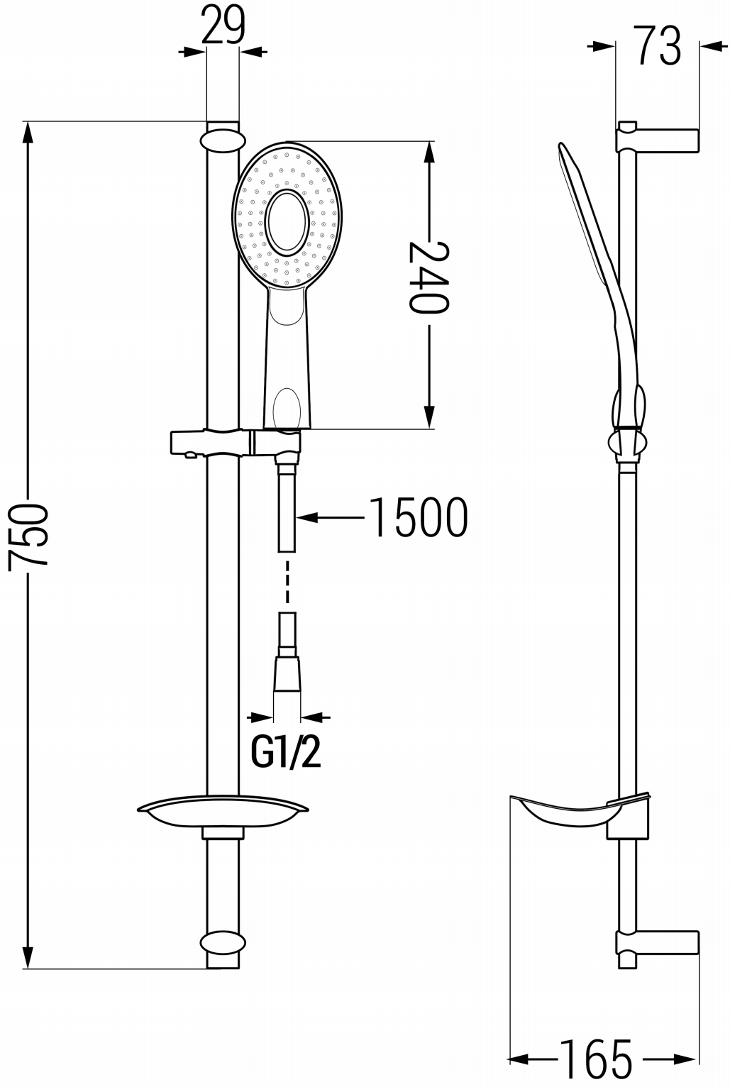 Απόσταση από τον τοίχο: 165 mm