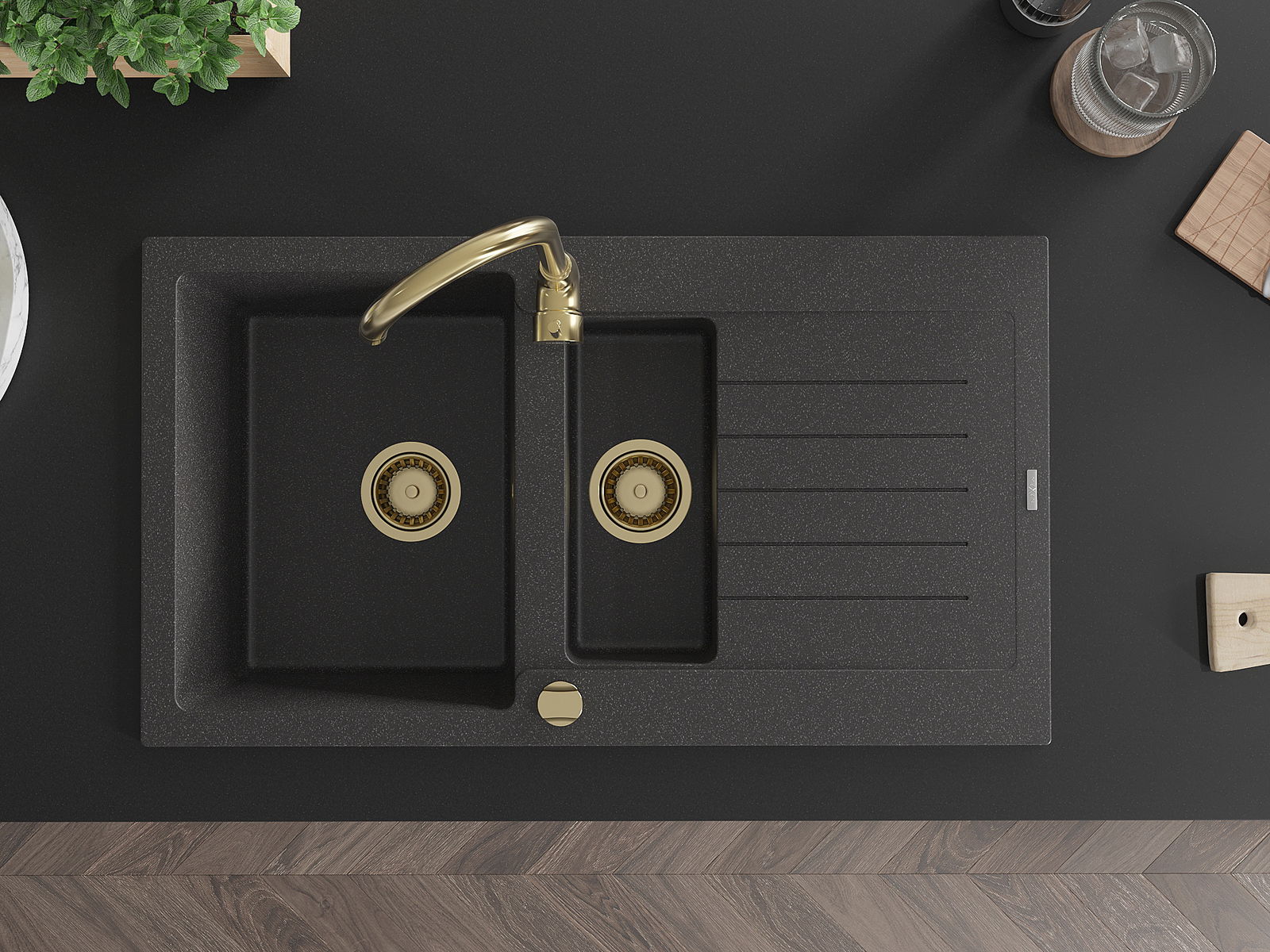 Mexen Matias νεροχύτης γρανίτης 1,5 θάλαμος με στραγγιστήρα και μπαταρία