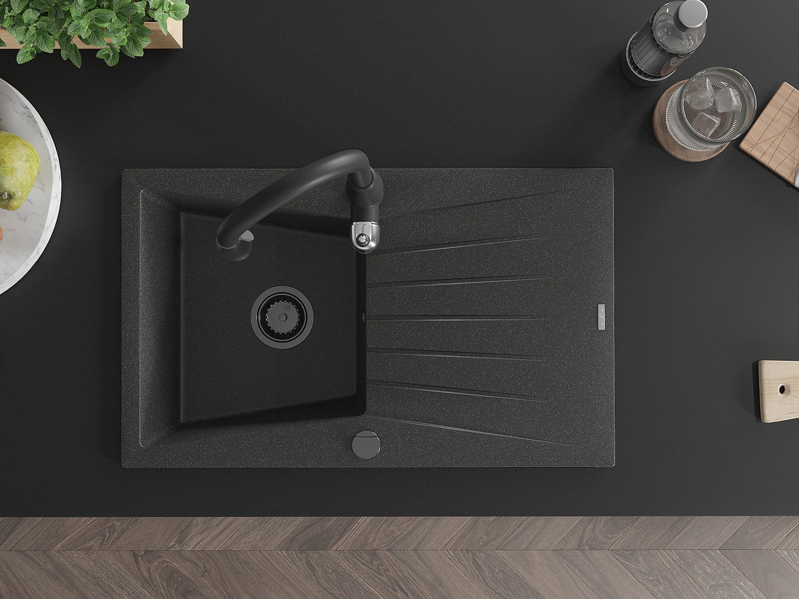 Mexen Cesar Νεροχύτης γρανίτη μονόχωρος με αποστραγγιστήριο και μπαταρία