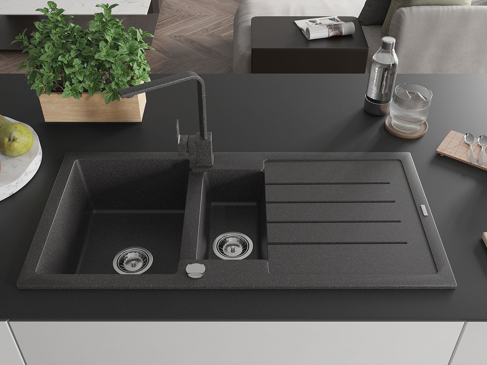 Mexen Andres νεροχύτης γρανίτης 1,5-διαμερισμάτων με αποστράγγιση και
