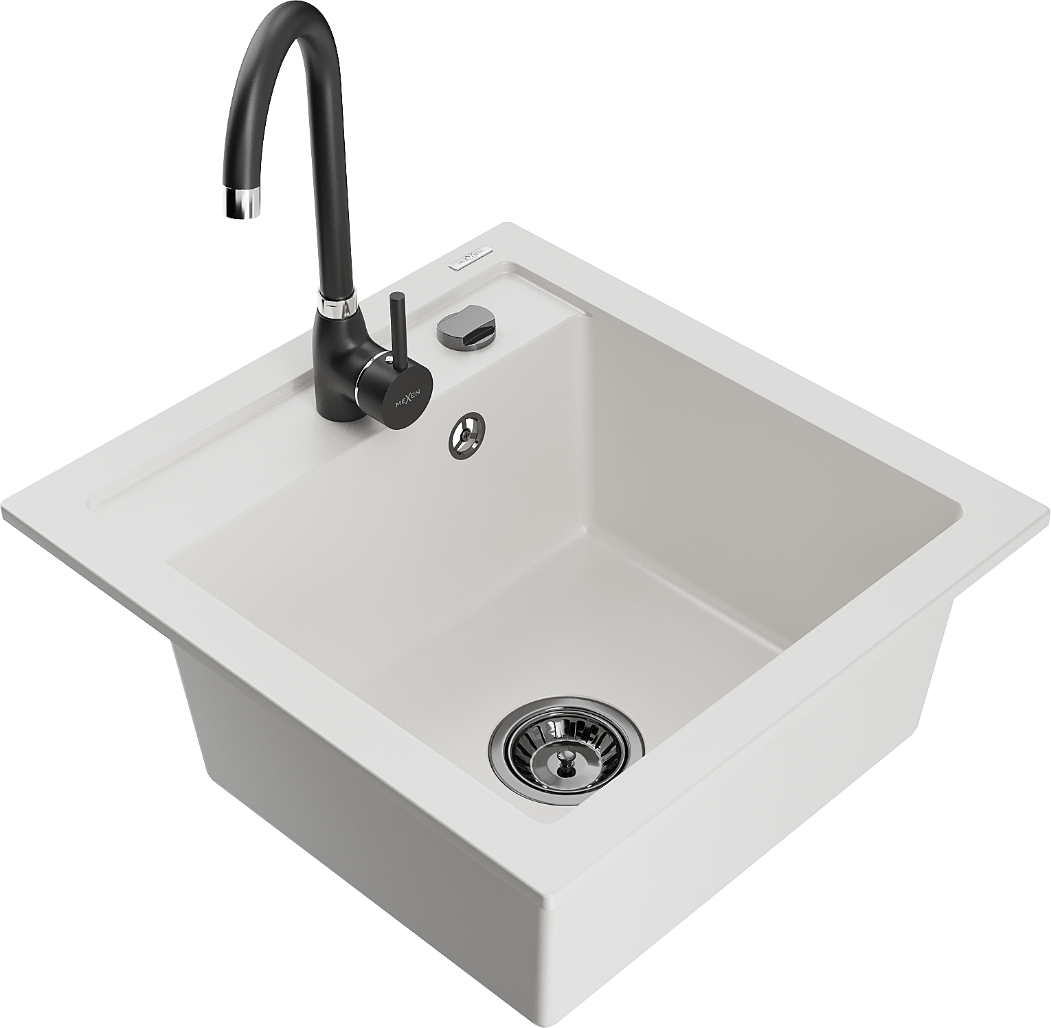 Mexen Vito νεροχύτης γρανίτης 1-θέσιος με μπαταρία κουζίνας Telma, λευκός