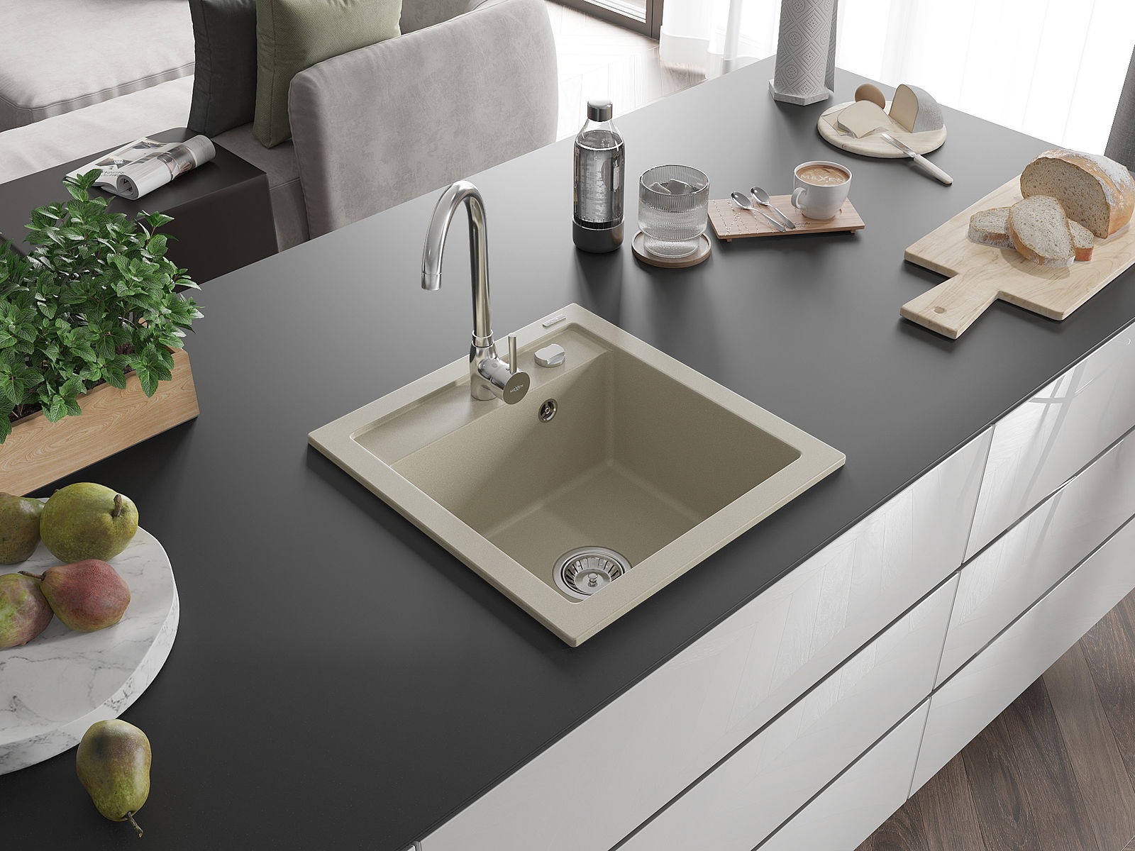 Ο νεροχύτης κατασκευάστηκε από υψηλής ποιότητας γρανίτη. Αποτελεί μια κομψή, και κυρίως πρακτική προσθήκη για κάθε κουζίνα, ανεξάρτητα από το στυλ της. Η υψηλή ποιότητα και η αντοχή του γρανίτη εξασφαλίζουν πολυετή χρήση.