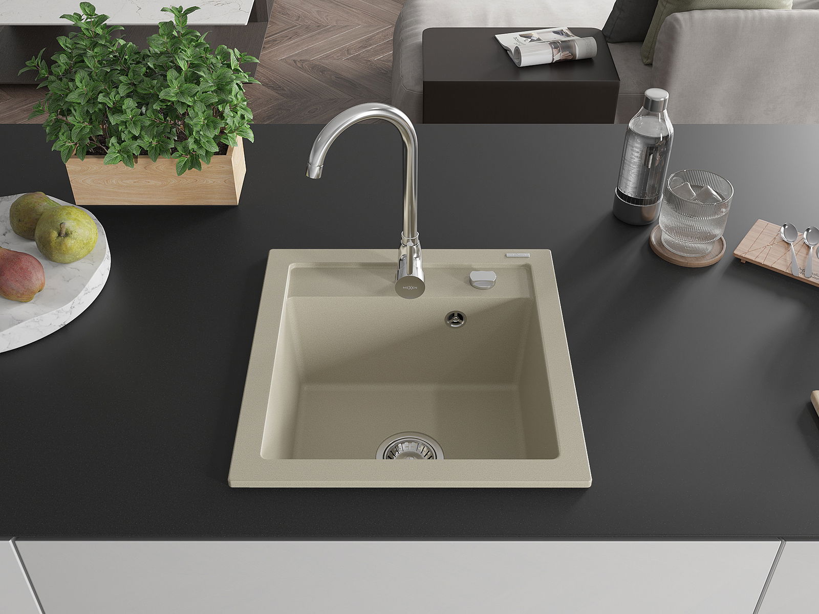 Mexen Vito νεροχύτης γρανίτης 1-χώρος με μπαταρία κουζίνας Τέλμα, μπεζ