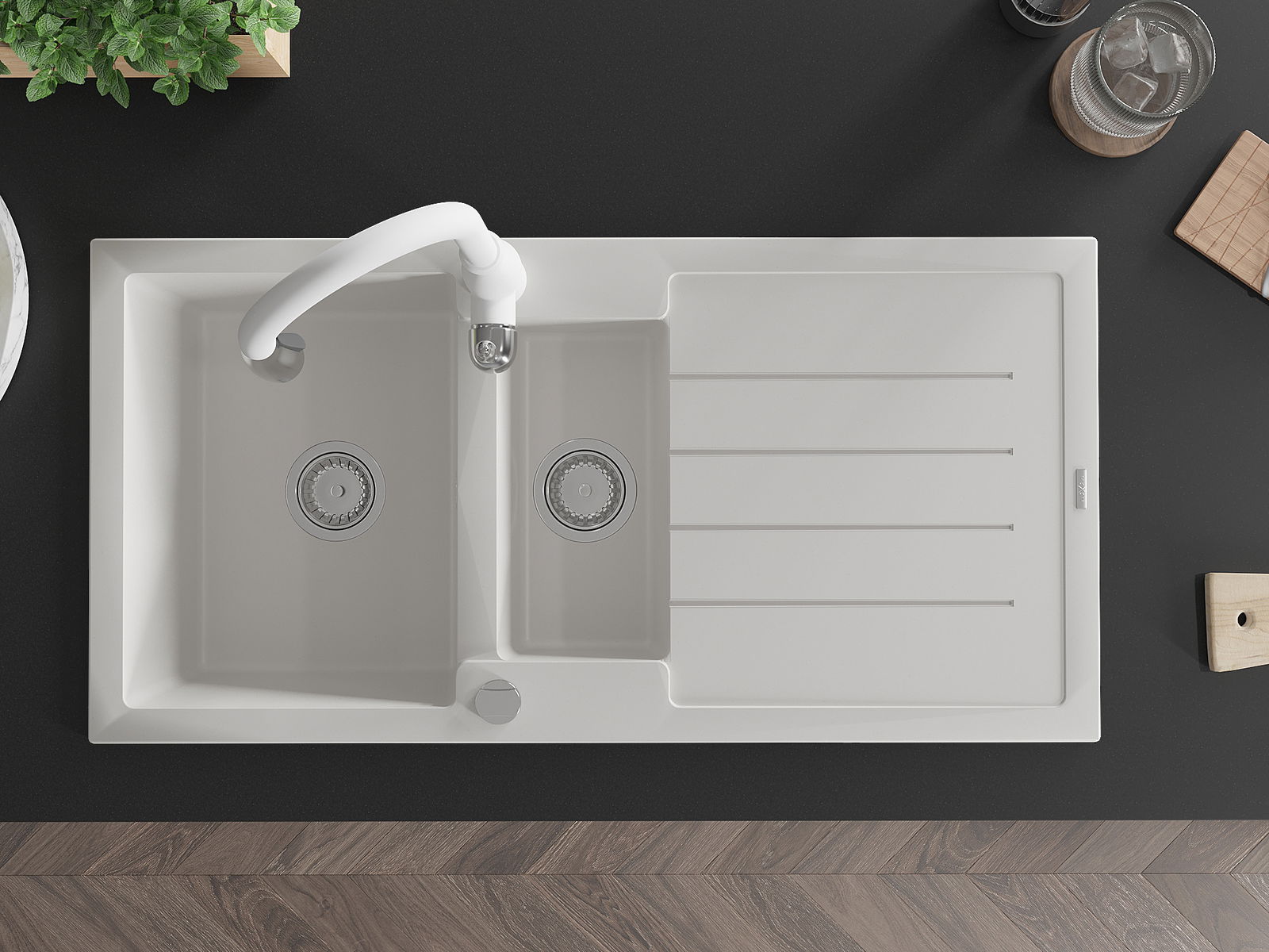 Η επιλογή ενός νεροχύτη με στραγγιστήρι είναι μια πρακτική λύση που επιτρέπει να τοποθετήσετε τα πλυμένα πιάτα ή τα λαχανικά και τα φρούτα. Το στραγγιστήρι διευκολύνει το καθημερινό μαγείρεμα και βοηθά στη διατήρηση της τάξης στην κουζίνα.