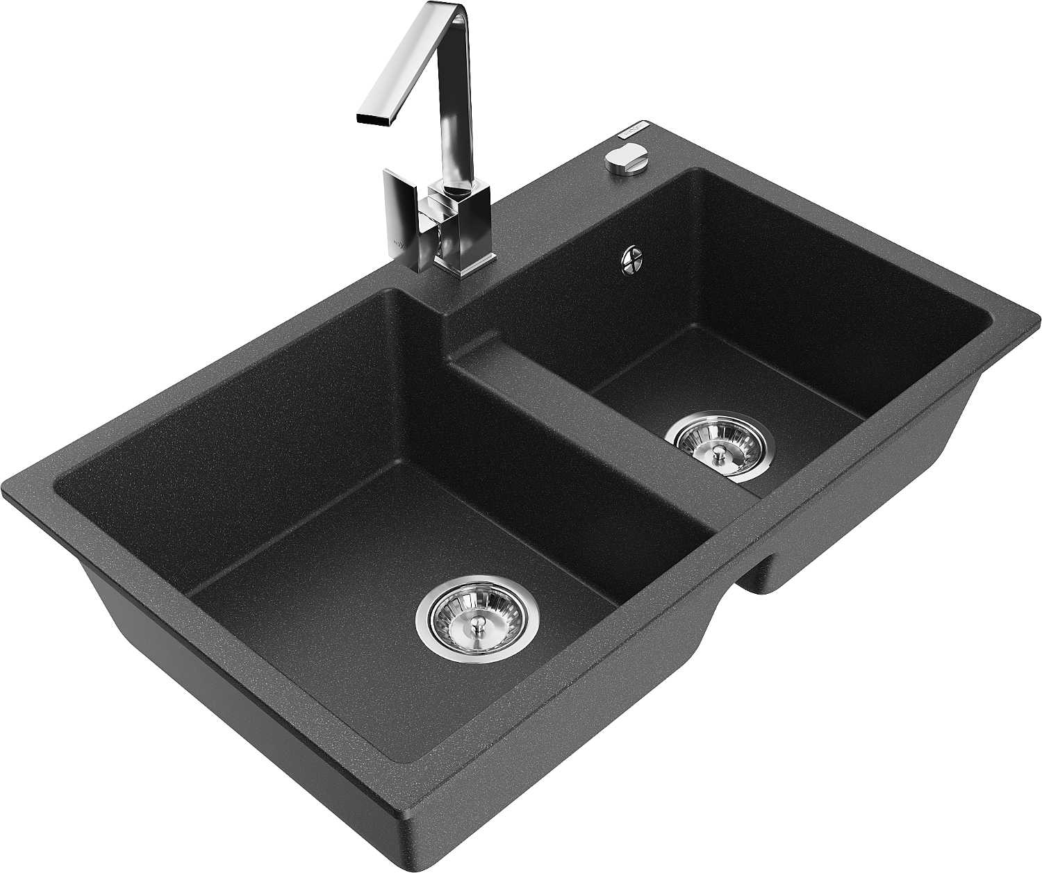Mexen Tomas νεροχύτης από γρανίτη 2 θαλάμων με μπαταρία κουζίνας Rita, μαύρος