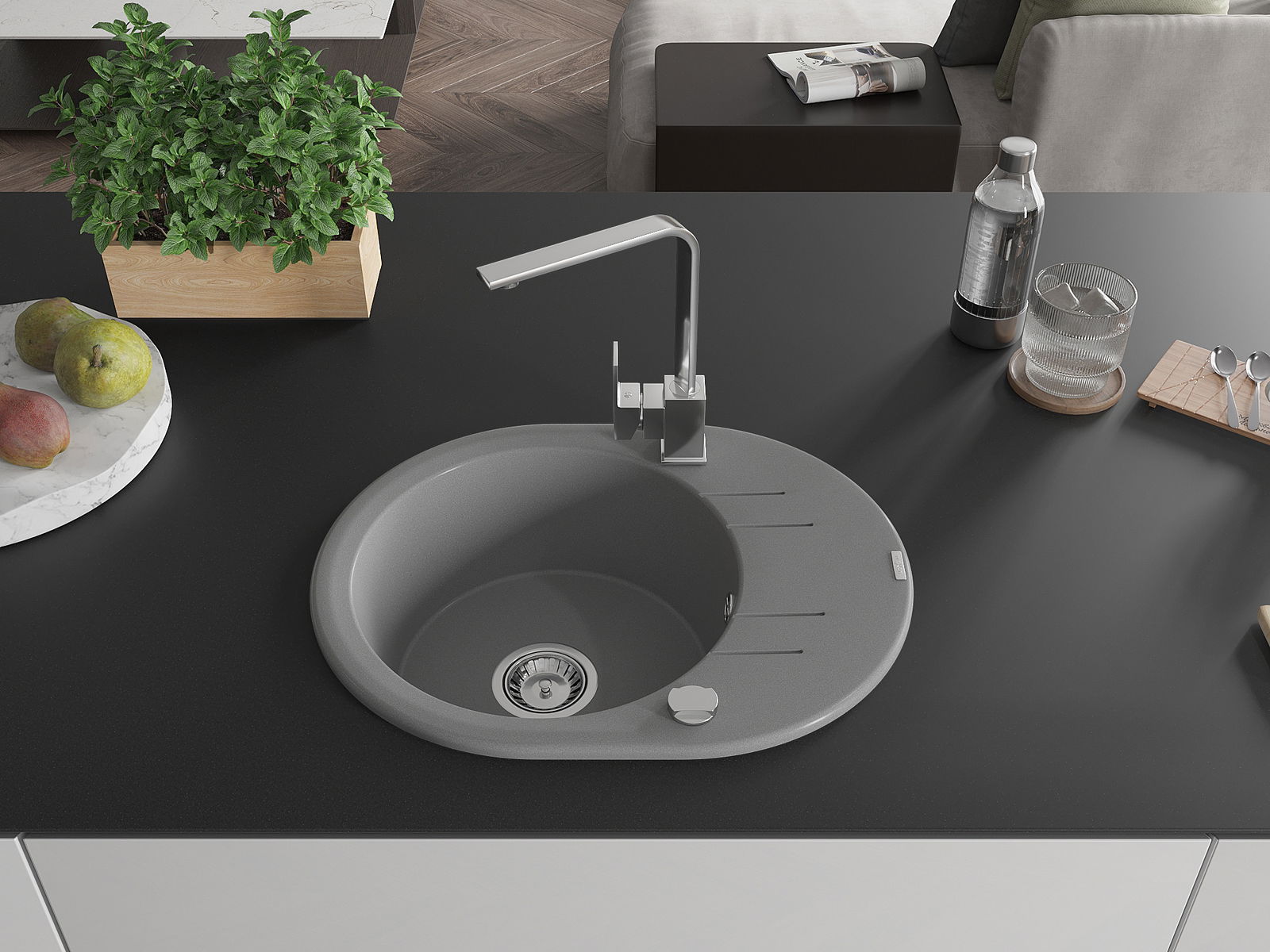 Ο νεροχύτης κατασκευάστηκε από υψηλής ποιότητας γρανίτη. Αποτελεί μια κομψή, και κυρίως πρακτική προσθήκη για κάθε κουζίνα, ανεξάρτητα από το στυλ της. Η υψηλή ποιότητα και η αντοχή του γρανίτη εξασφαλίζουν πολυετή χρήση.