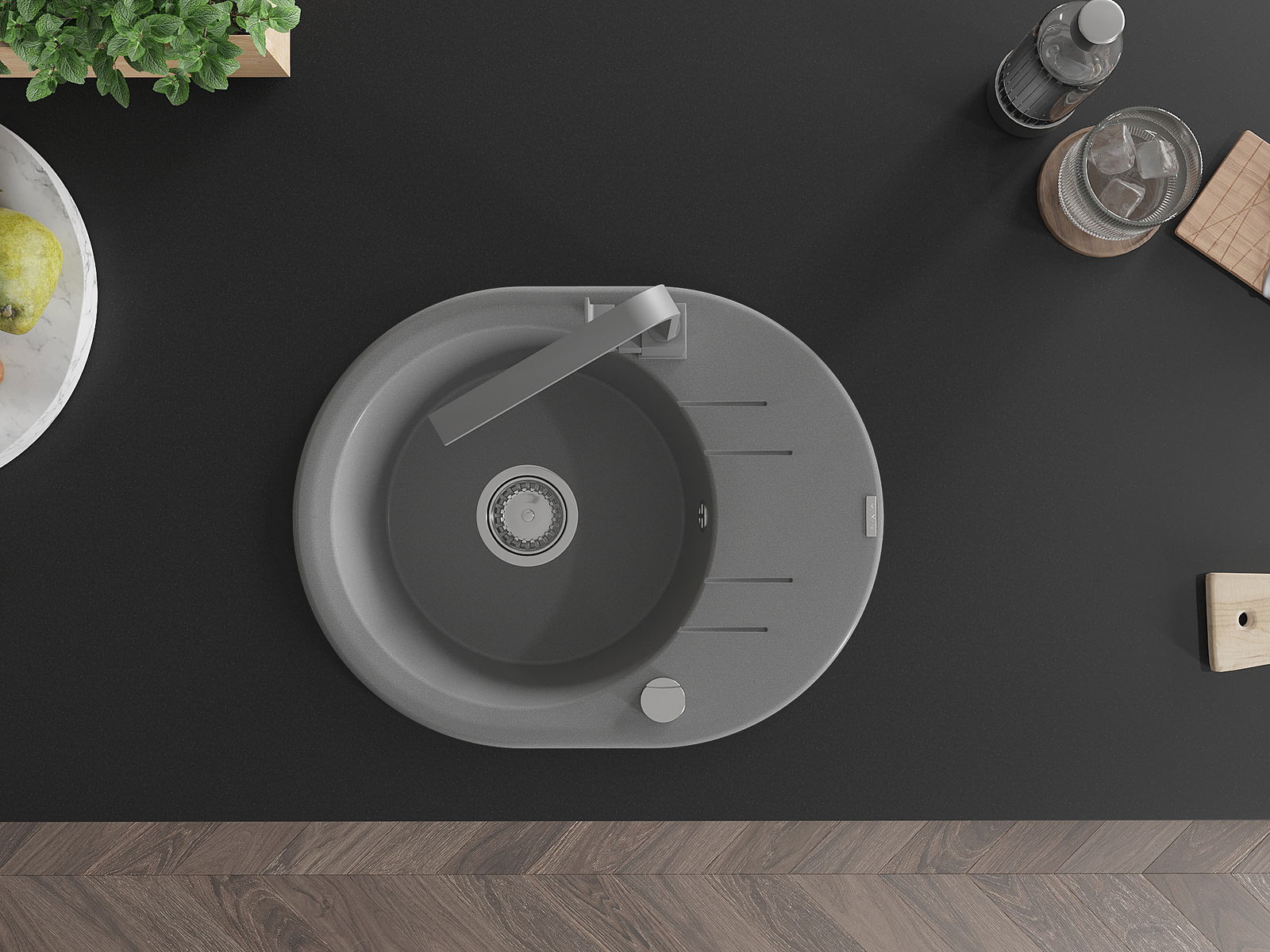 Mexen Kevin νεροχύτης γρανίτης 1-διαμερισμάτων με απορροφητήρα και