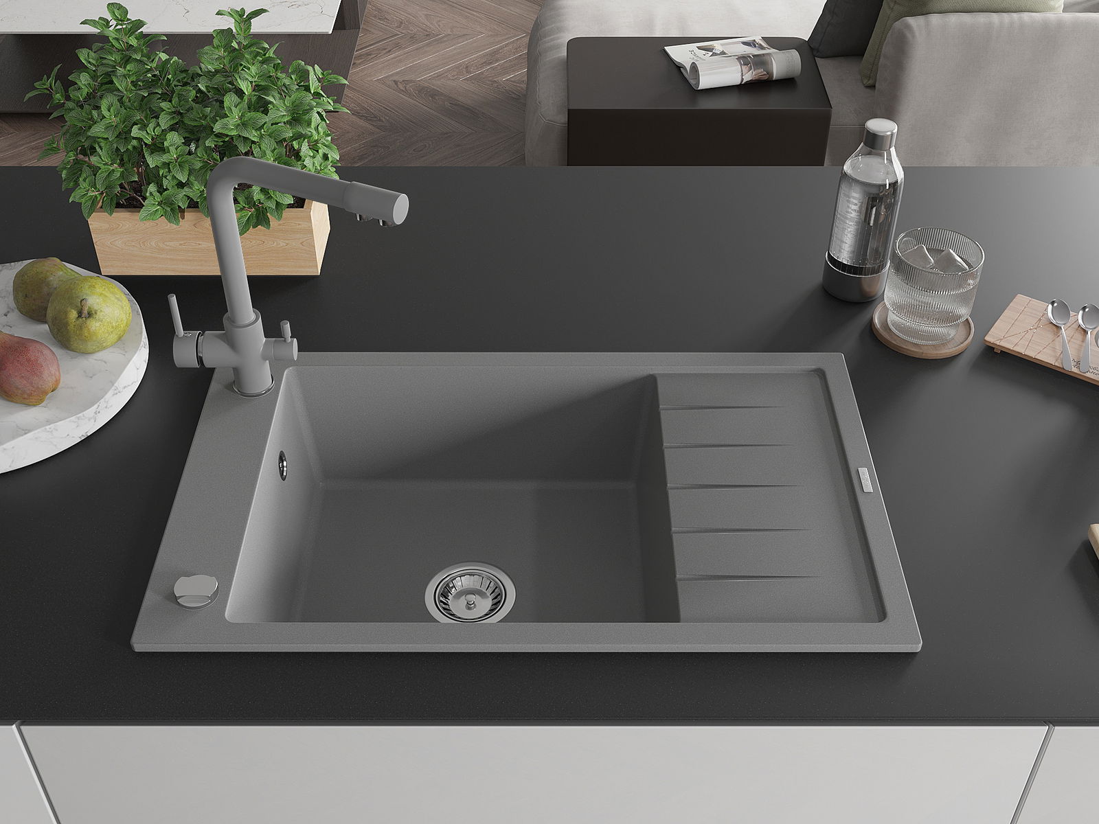 Ο νεροχύτης κατασκευάστηκε από υψηλής ποιότητας γρανίτη. Αποτελεί μια κομψή, και κυρίως πρακτική προσθήκη για κάθε κουζίνα, ανεξάρτητα από το στυλ της. Η υψηλή ποιότητα και η αντοχή του γρανίτη εξασφαλίζουν πολυετή χρήση.