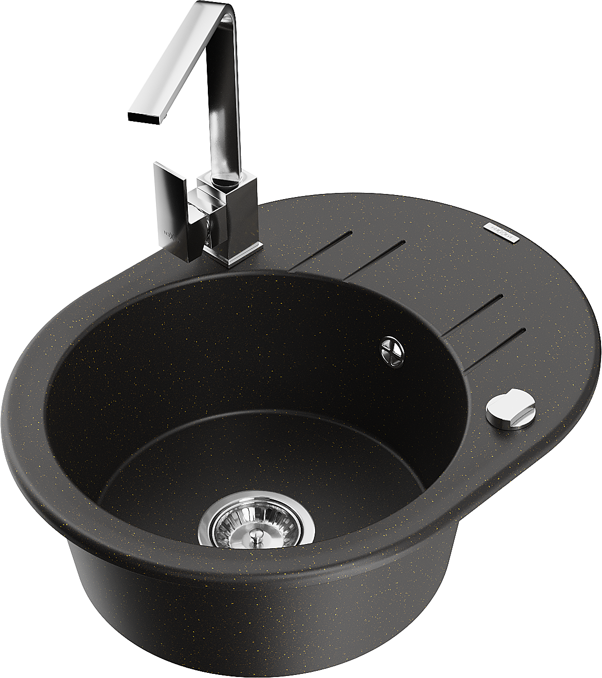 Mexen Kevin νεροχύτης γρανίτη μονού θαλάμου με αποστράγγιση και μπαταρία