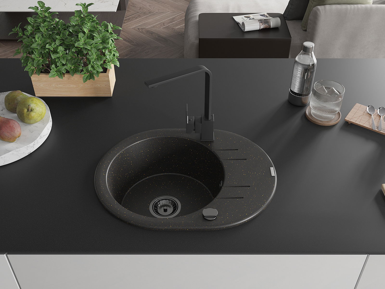 Mexen Kevin νεροχύτης γρανίτη 1 διαμερίσματος με αποστράγγιση και