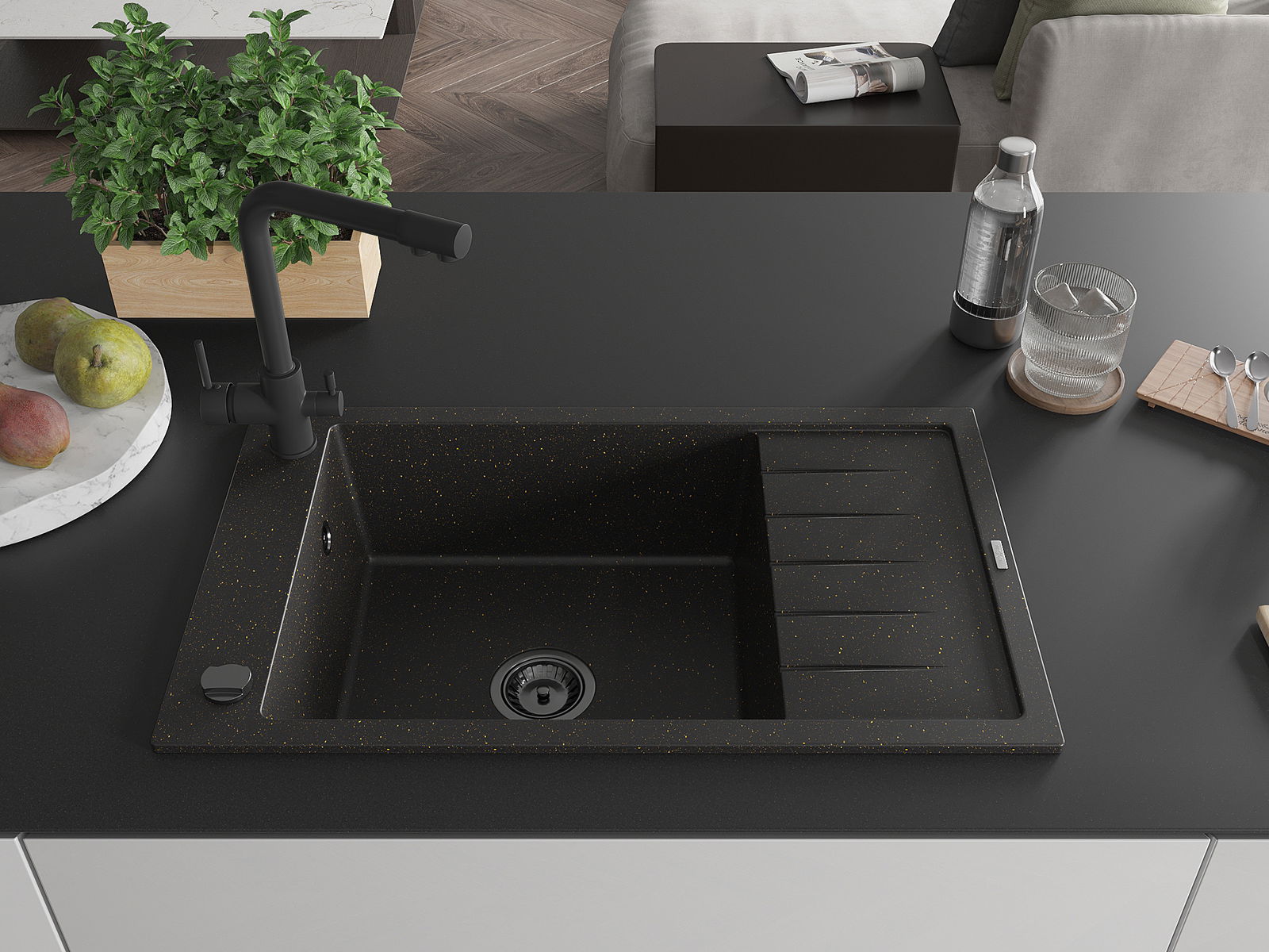Ο νεροχύτης κατασκευάστηκε από υψηλής ποιότητας γρανίτη. Αποτελεί μια κομψή, και κυρίως πρακτική προσθήκη για κάθε κουζίνα, ανεξάρτητα από το στυλ της. Η υψηλή ποιότητα και η αντοχή του γρανίτη εξασφαλίζουν πολυετή χρήση.