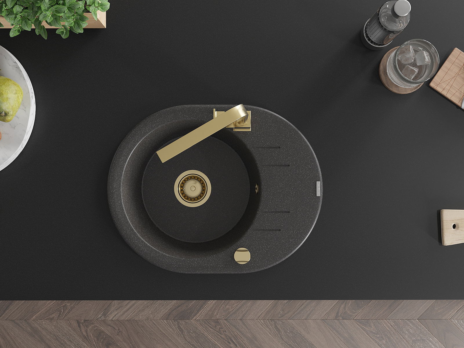 Ο νεροχύτης κατασκευάστηκε από υψηλής ποιότητας γρανίτη. Αποτελεί μια κομψή, και κυρίως πρακτική προσθήκη για κάθε κουζίνα, ανεξάρτητα από το στυλ της. Η υψηλή ποιότητα και η αντοχή του γρανίτη εξασφαλίζουν πολυετή χρήση.