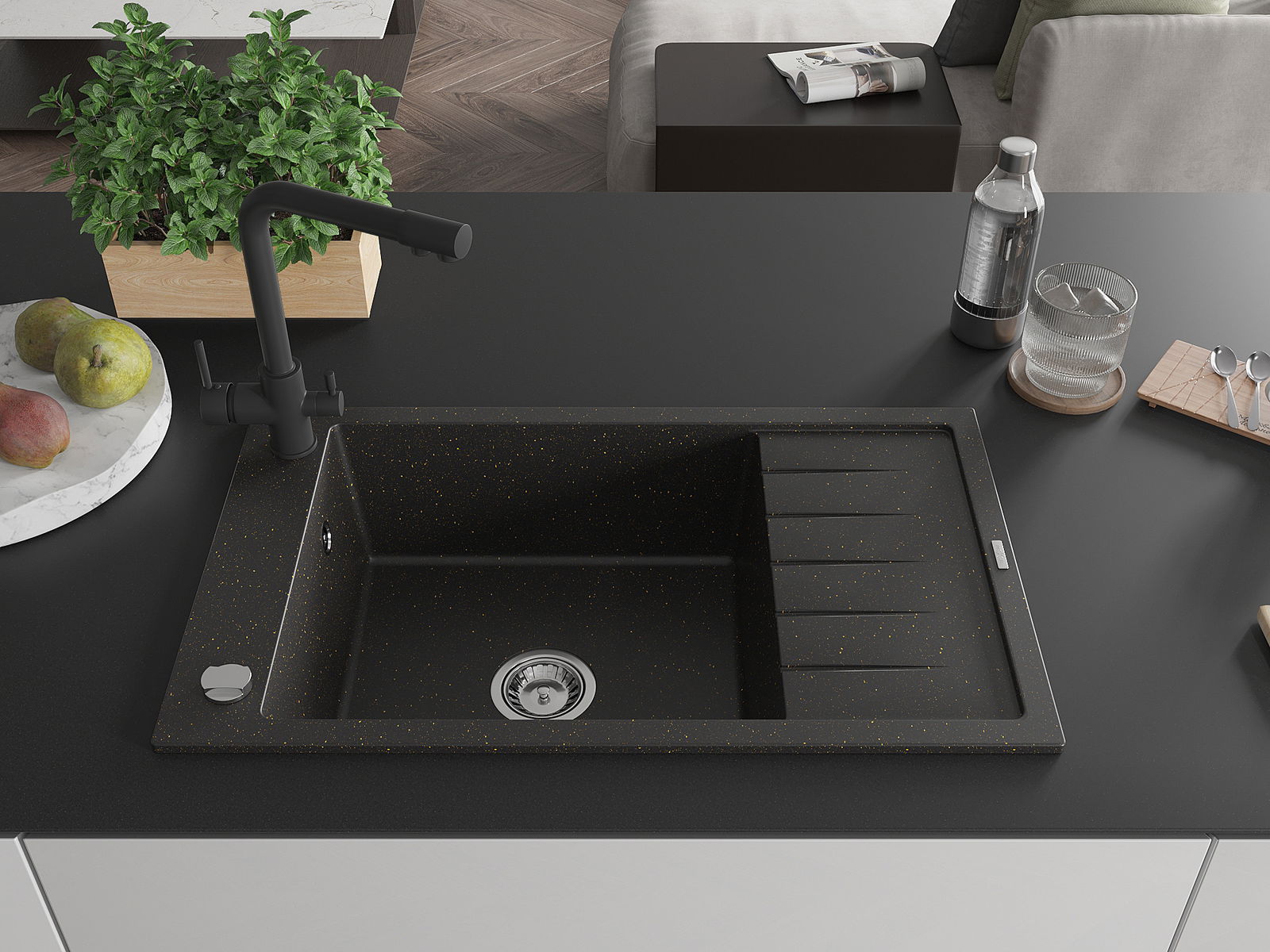 Mexen Elias νεροχύτης γρανίτης 1-θέσεων με αποστραγγιστήρα και μπαταρία