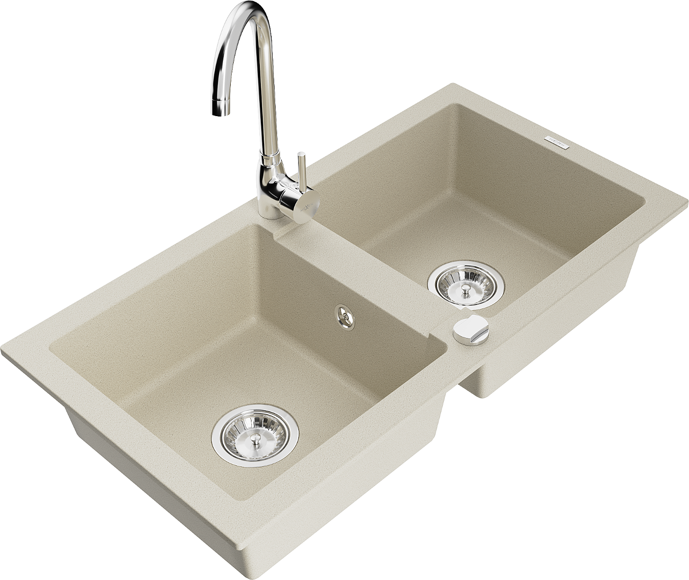 Mexen Mario νεροχύτης γρανίτη 2-θάλαμος με μπαταρία κουζίνας Telma, μπεζ
