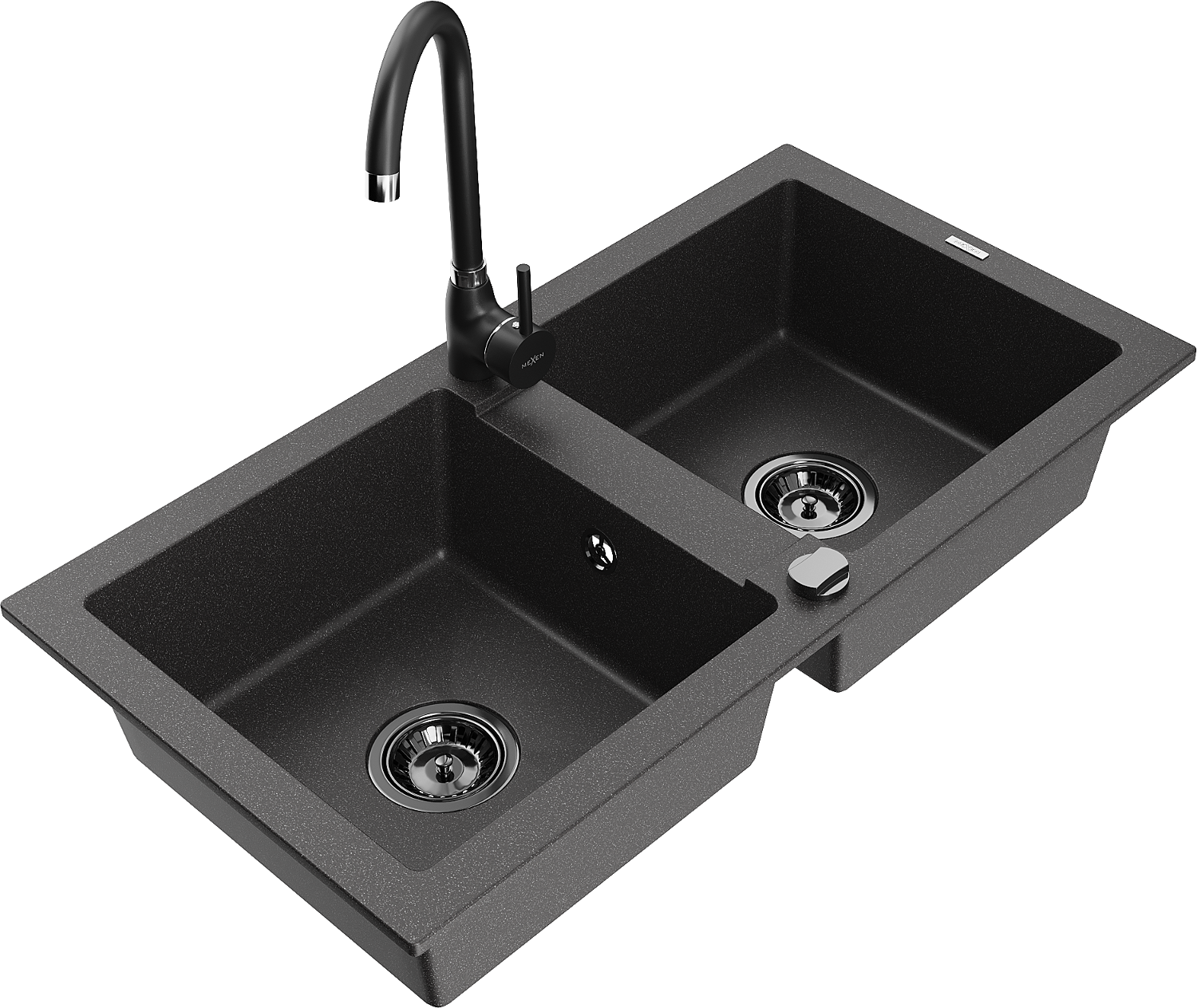 Mexen Mario νεροχύτης γρανίτης 2-θαλάμων με μπαταρία κουζίνας Telma, μαύρο