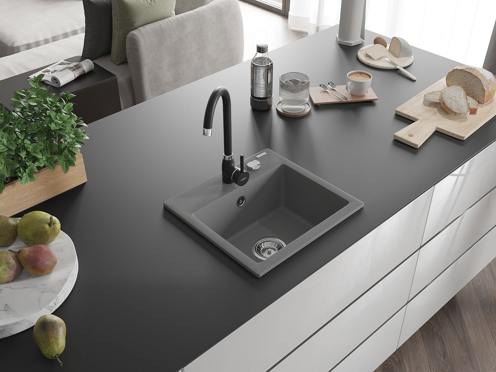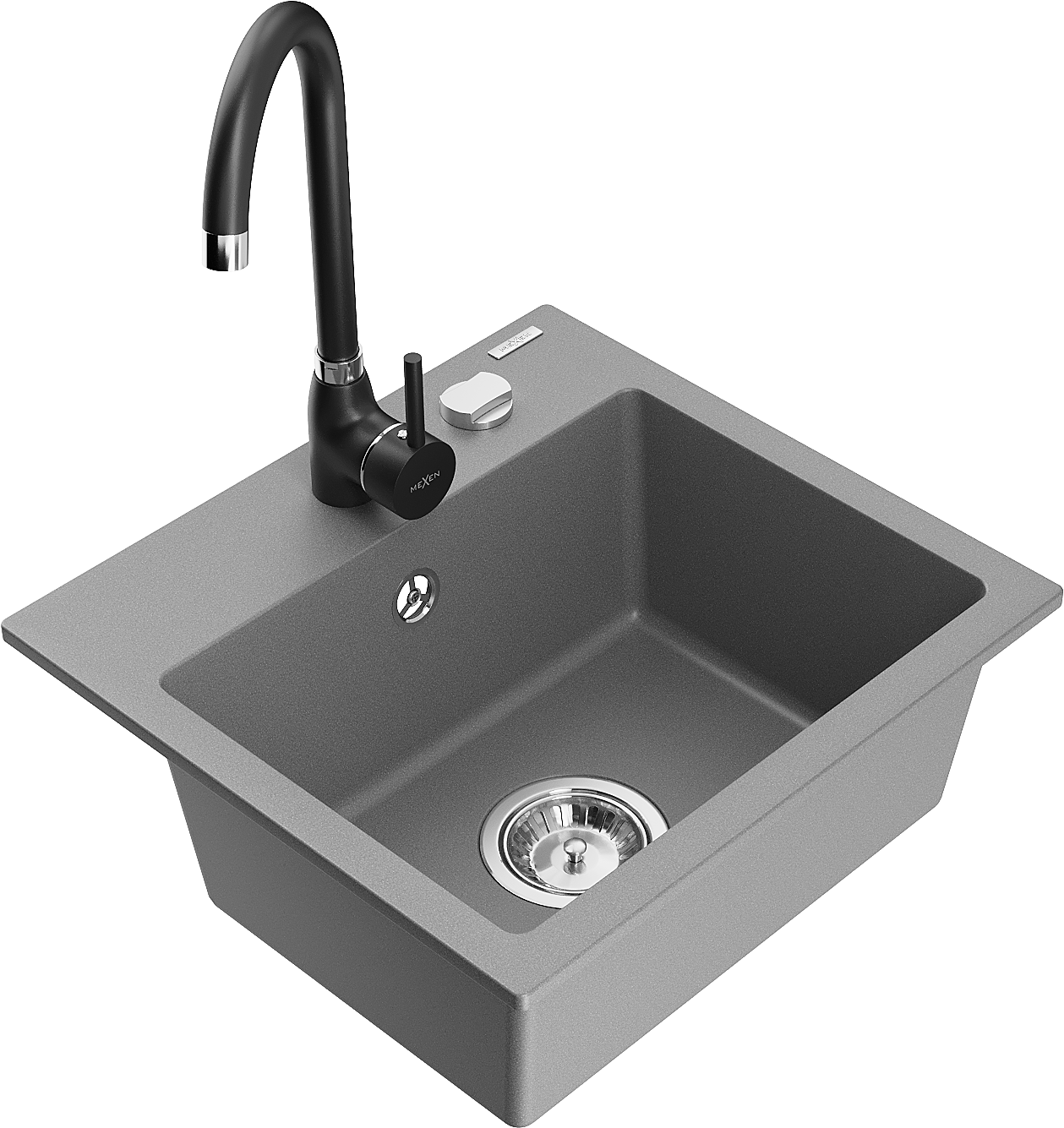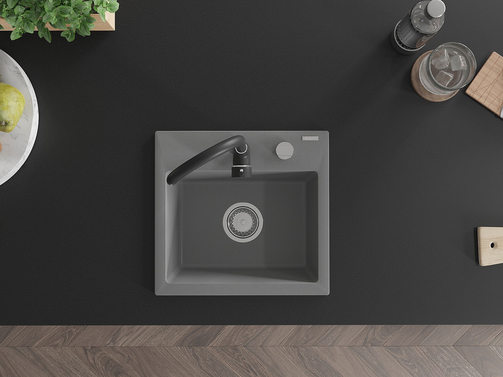 Mexen Milo νεροχύτης γρανίτης 1-θάλαμος με μπαταρία κουζίνας Telma, γκρι