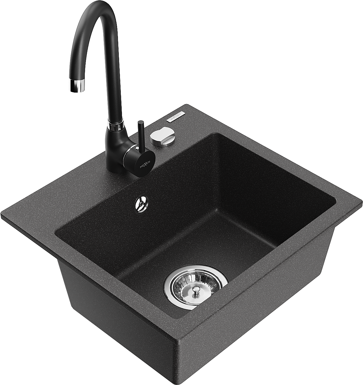 Mexen Milo νεροχύτης γρανίτης 1-δοχείο με μπαταρία κουζίνας Telma, μαύρο με