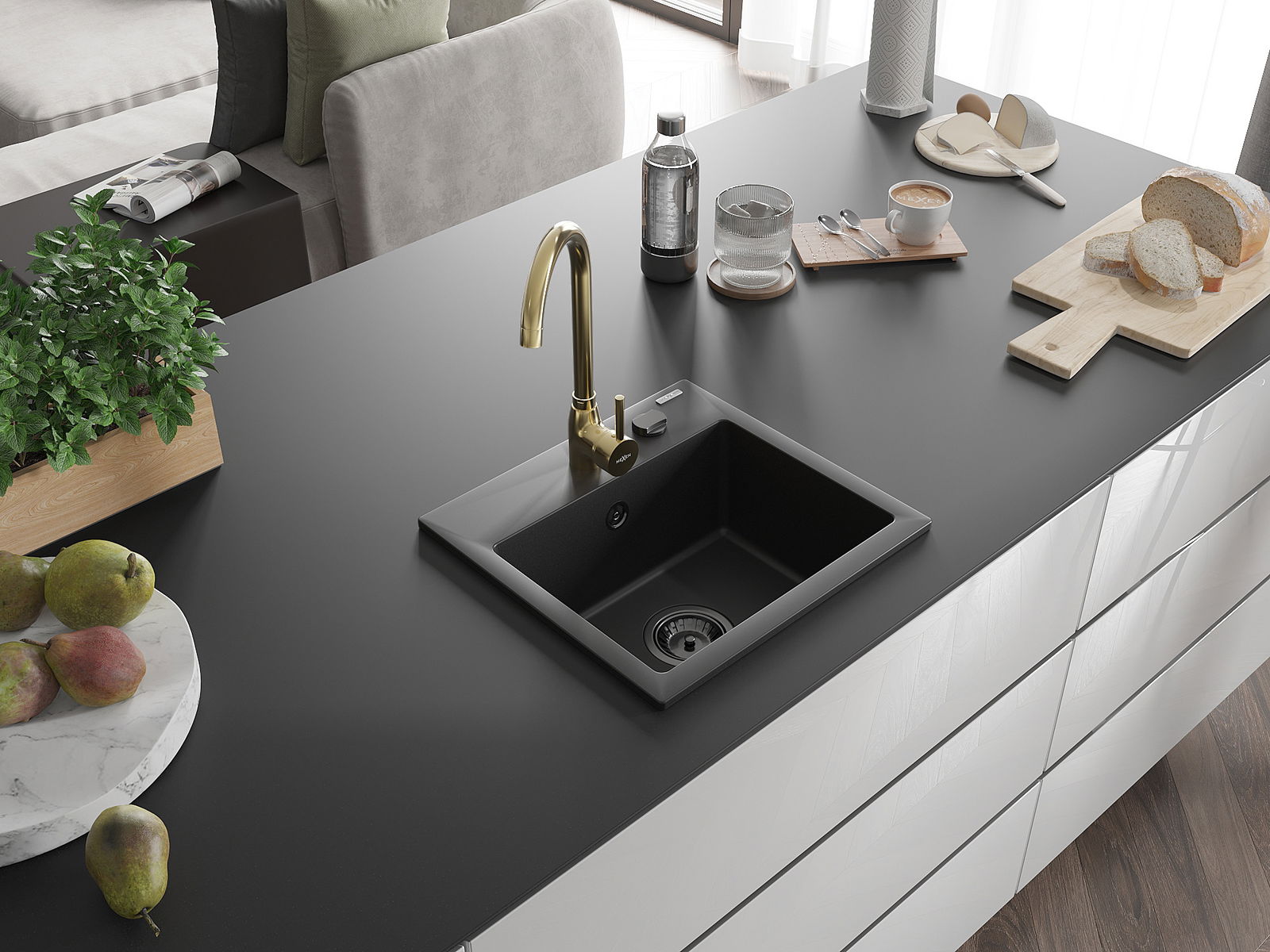 Mexen Milo νεροχύτης γρανίτης 1-θαλάμου με βρύση κουζίνας Telma, μαύρος