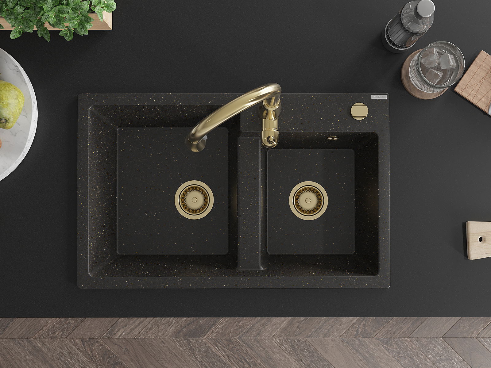 Mexen Tomas νεροχύτης από γρανίτη 2 θαλάμων με μπαταρία κουζίνας Savita,