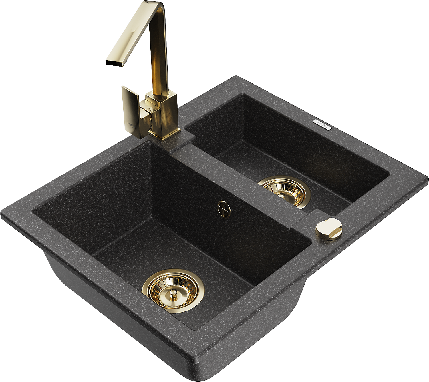 Mexen Carlos νεροχύτης γρανίτης 1,5 θαλάμων με μπαταρία κουζίνας Rita, μαύρο