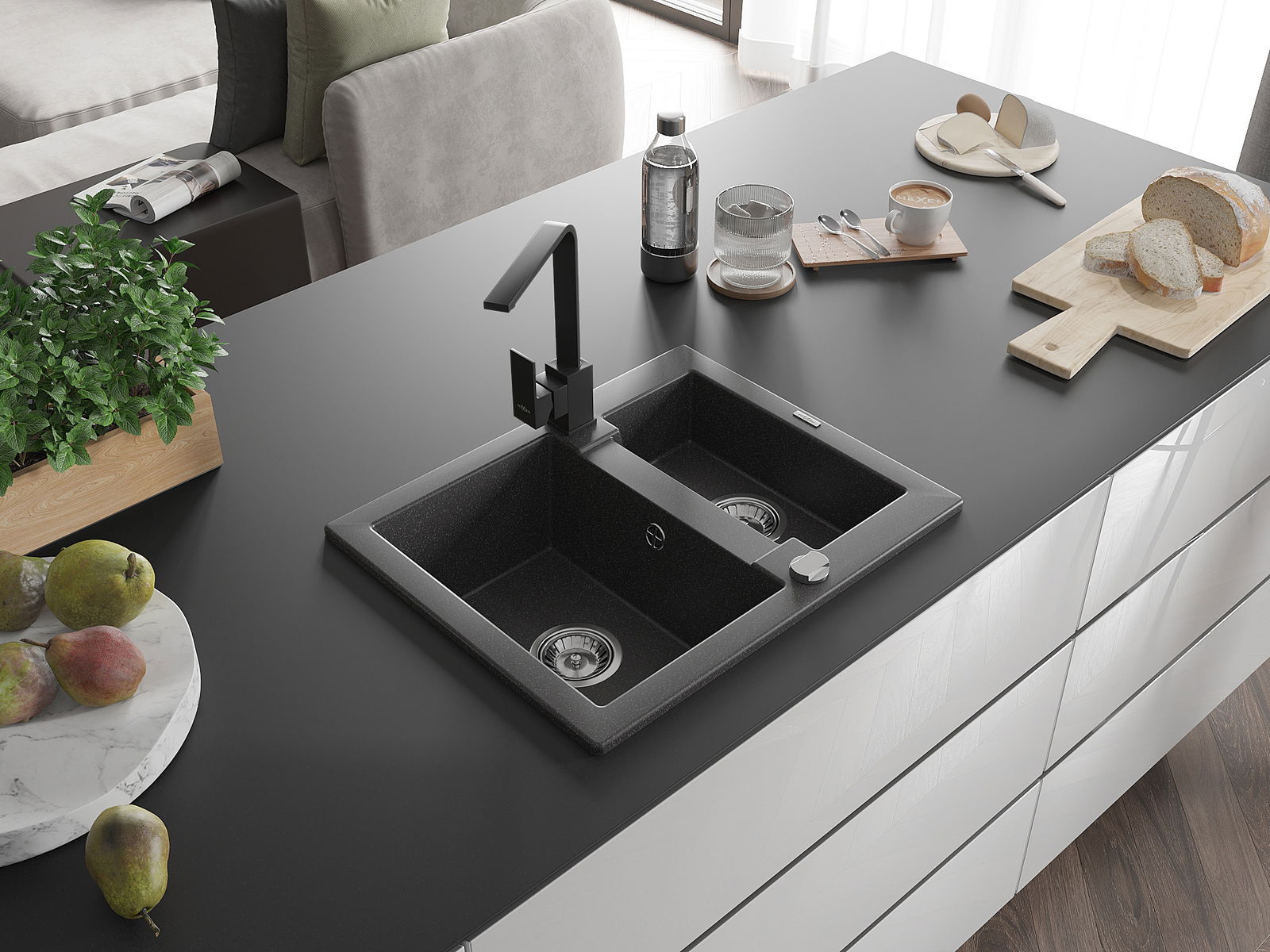 Mexen Carlos νεροχύτης από γρανίτη 1,5 θαλάμου με μπαταρία κουζίνας Rita,