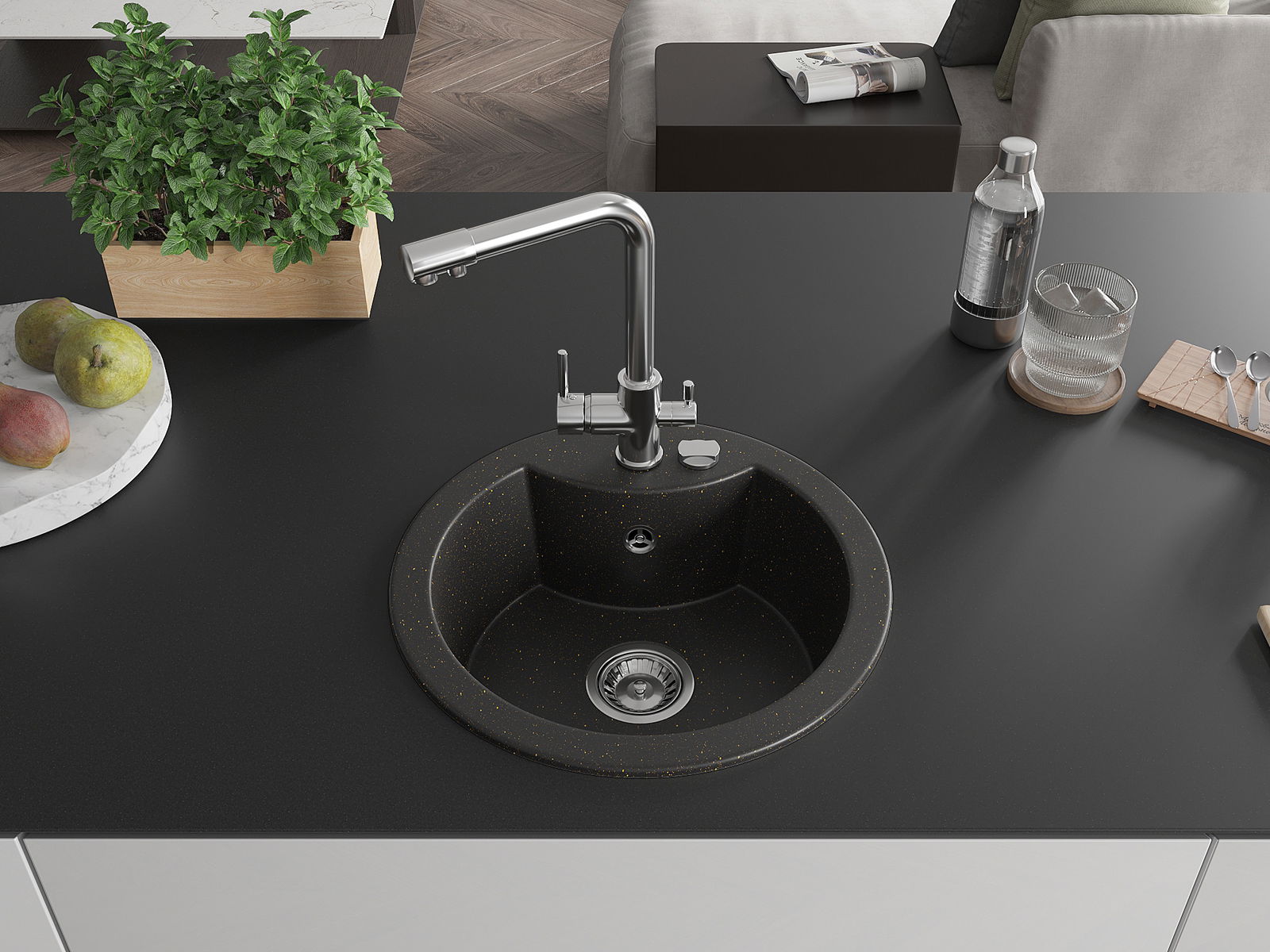 Ο νεροχύτης κατασκευάστηκε από υψηλής ποιότητας γρανίτη. Αποτελεί μια κομψή, και κυρίως πρακτική προσθήκη για κάθε κουζίνα, ανεξάρτητα από το στυλ της. Η υψηλή ποιότητα και η αντοχή του γρανίτη εξασφαλίζουν πολυετή χρήση.