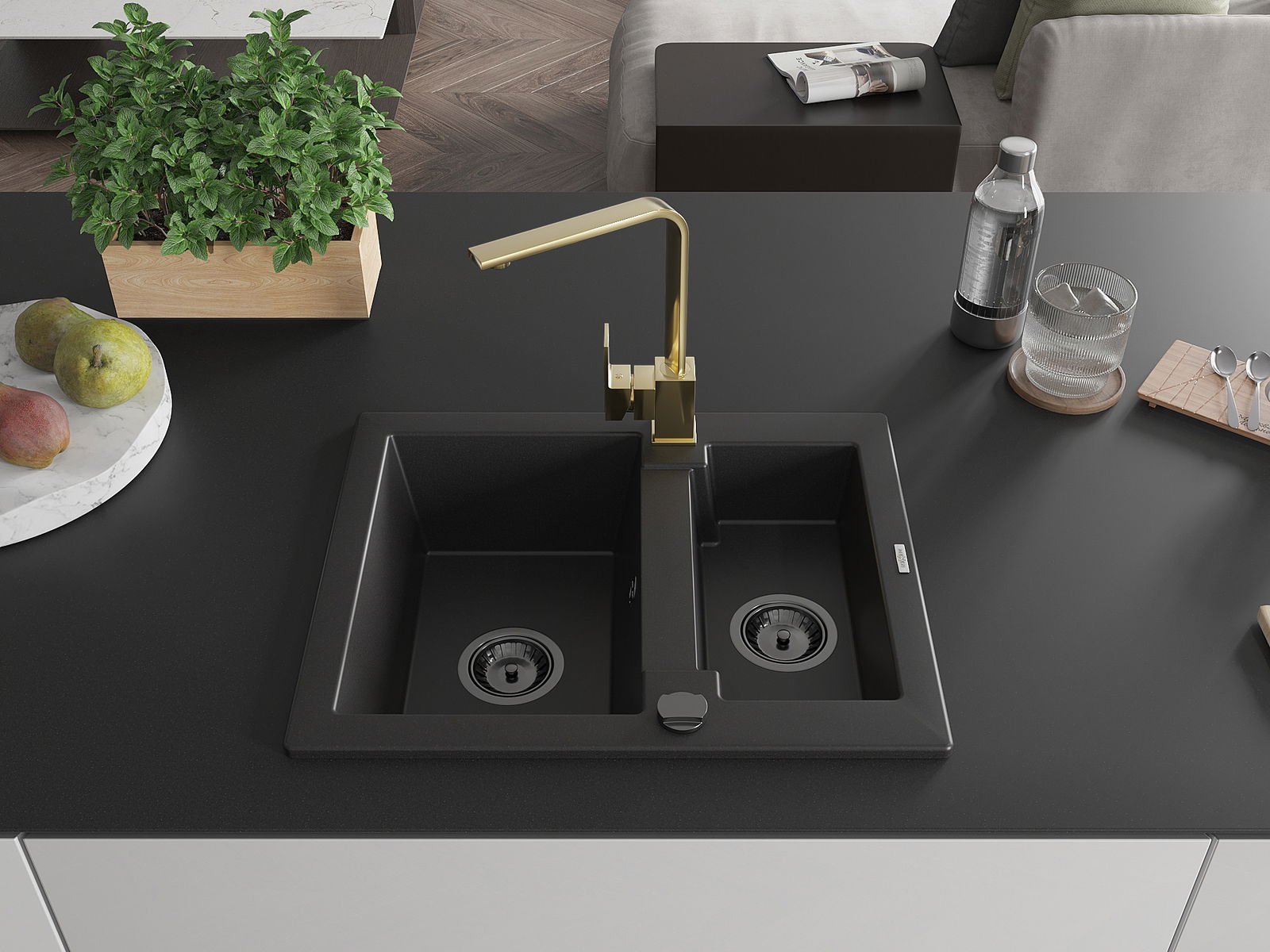 Mexen Carlos νεροχύτης γρανίτης 1,5 θάλαμος με μπαταρία κουζίνας Rita, μαύρος
