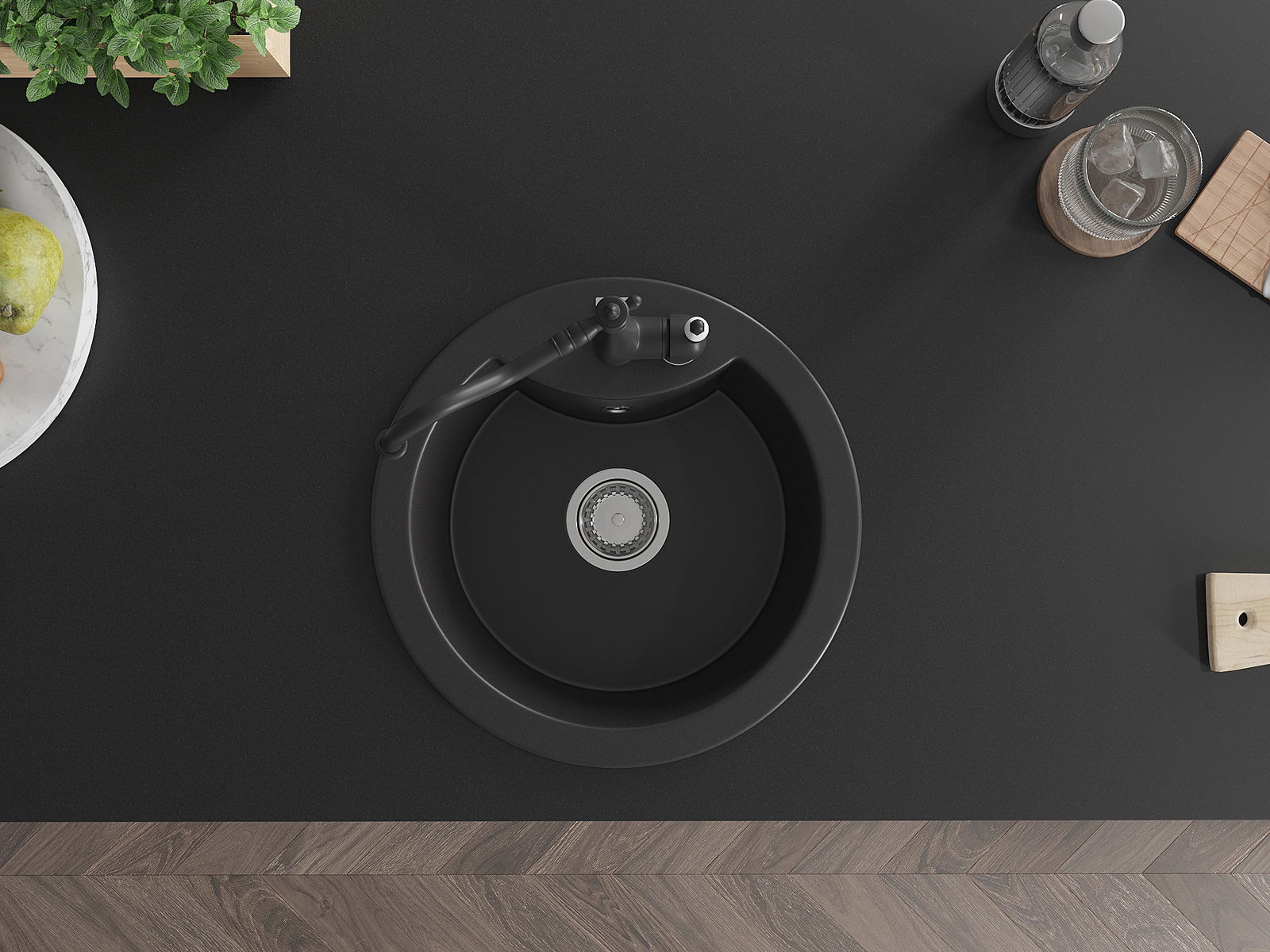 Ο νεροχύτης κατασκευάστηκε από υψηλής ποιότητας γρανίτη. Αποτελεί μια κομψή, και κυρίως πρακτική προσθήκη για κάθε κουζίνα, ανεξάρτητα από το στυλ της. Η υψηλή ποιότητα και η αντοχή του γρανίτη εξασφαλίζουν πολυετή χρήση.