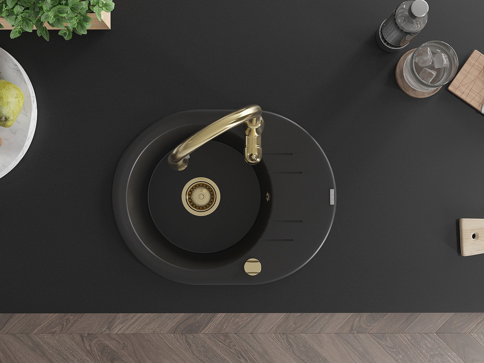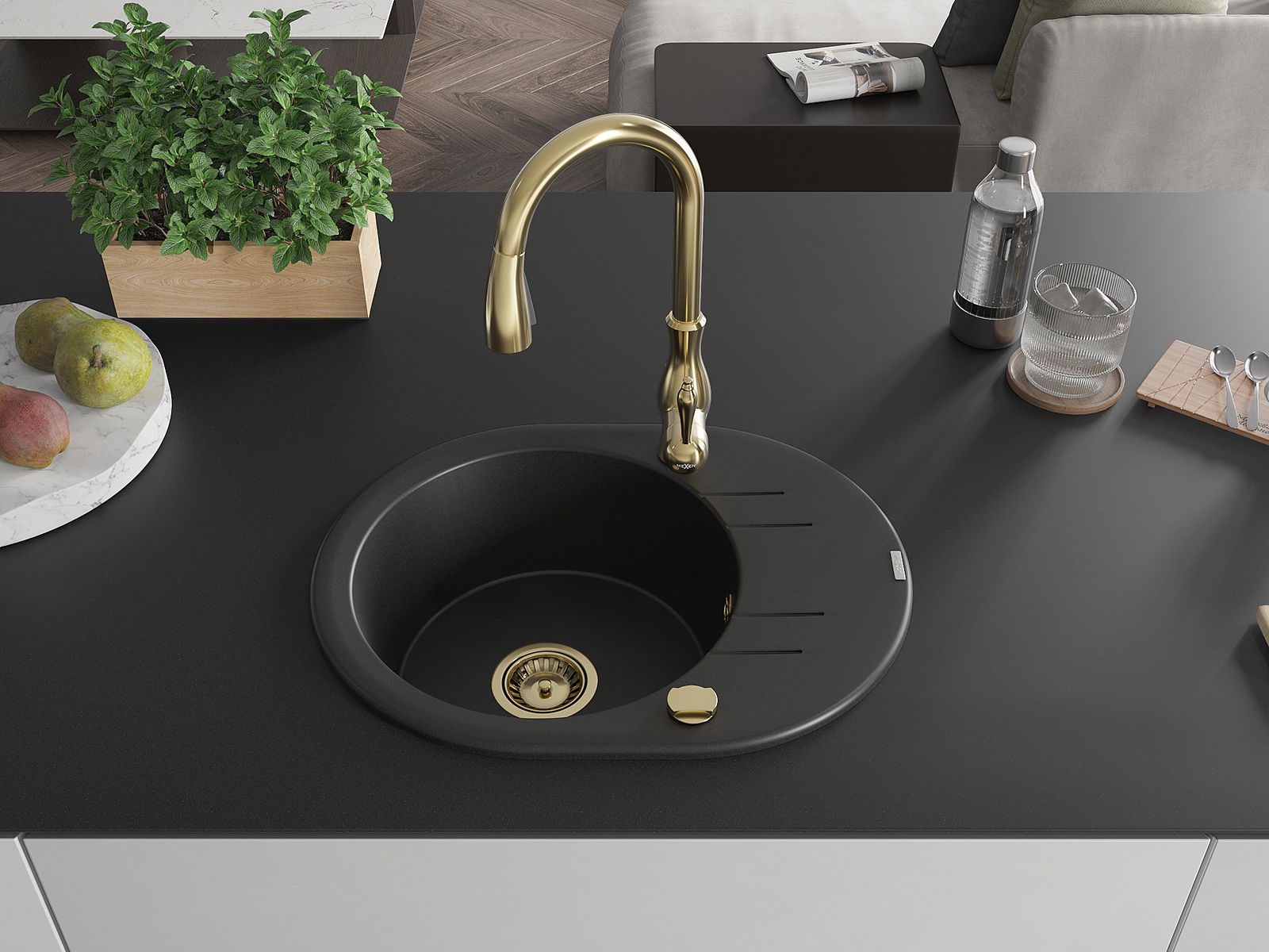 Mexen Kevin νεροχύτης γρανίτης 1-διαμερισμάτων με αποστραγγιστήρα και