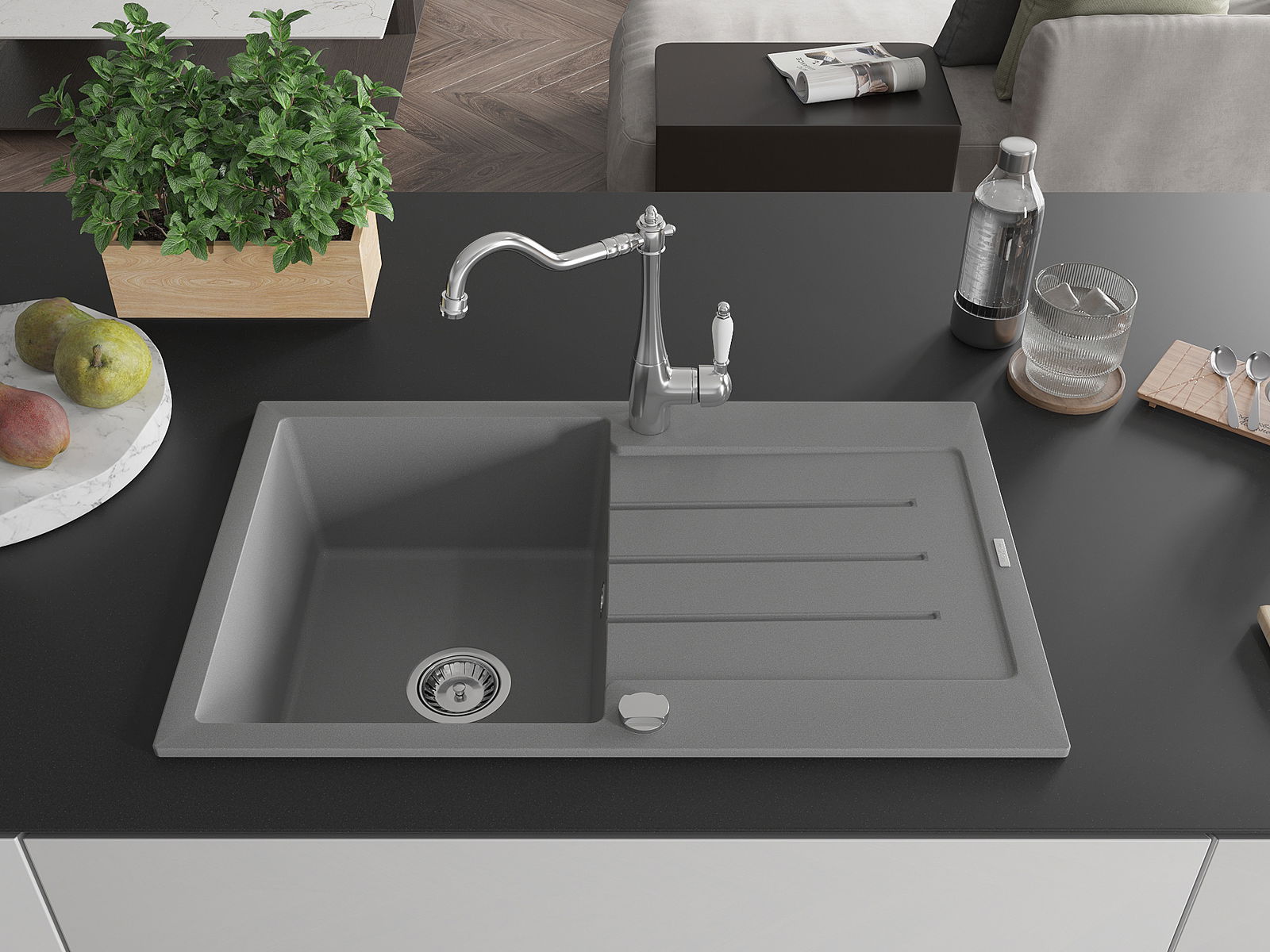 Ο νεροχύτης κατασκευάστηκε από υψηλής ποιότητας γρανίτη. Αποτελεί μια κομψή, και κυρίως πρακτική προσθήκη για κάθε κουζίνα, ανεξάρτητα από το στυλ της. Η υψηλή ποιότητα και η αντοχή του γρανίτη εξασφαλίζουν πολυετή χρήση.