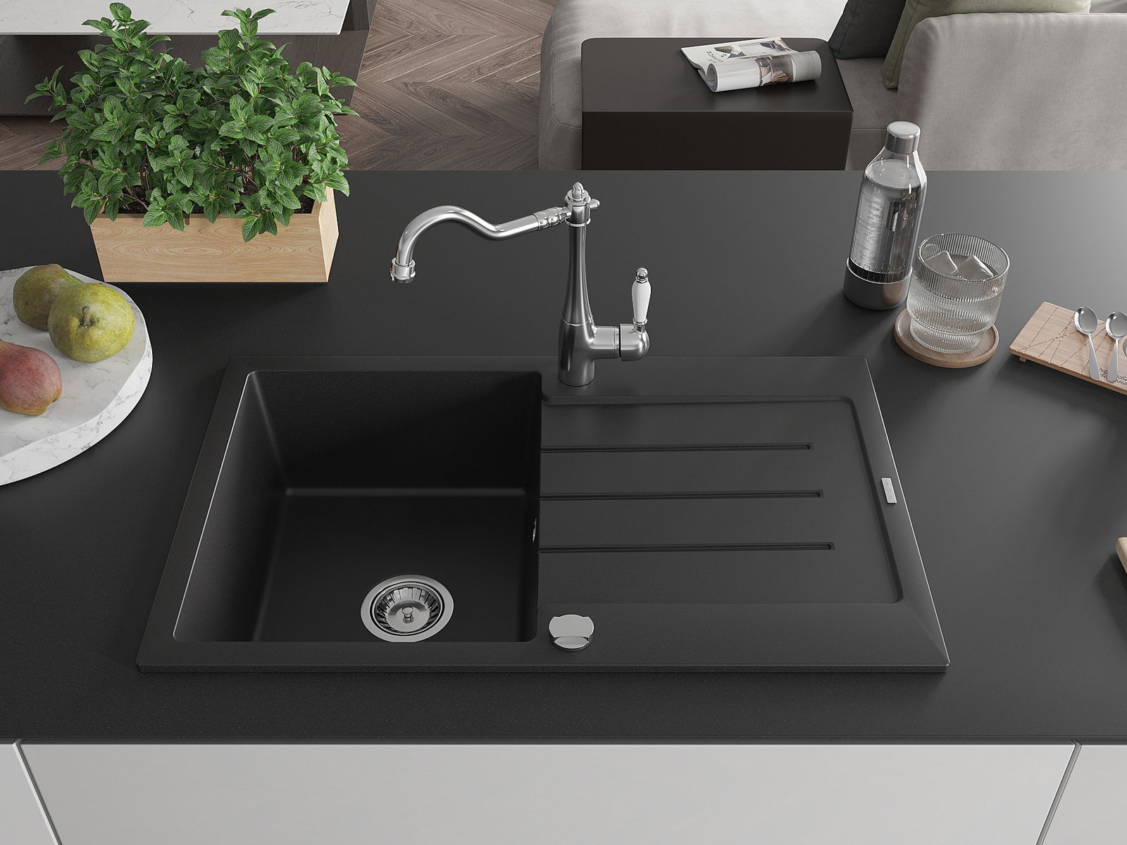 Ο νεροχύτης κατασκευάστηκε από υψηλής ποιότητας γρανίτη. Αποτελεί μια κομψή, και κυρίως πρακτική προσθήκη για κάθε κουζίνα, ανεξάρτητα από το στυλ της. Η υψηλή ποιότητα και η αντοχή του γρανίτη εξασφαλίζουν πολυετή χρήση.