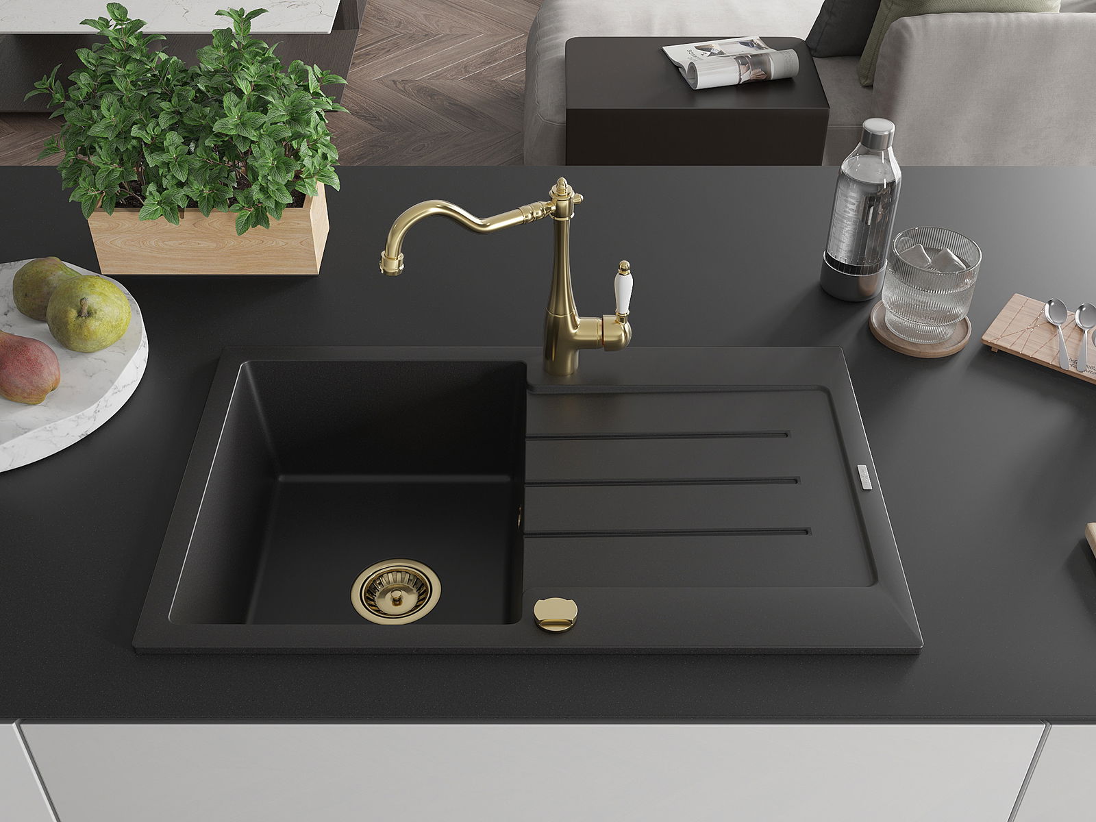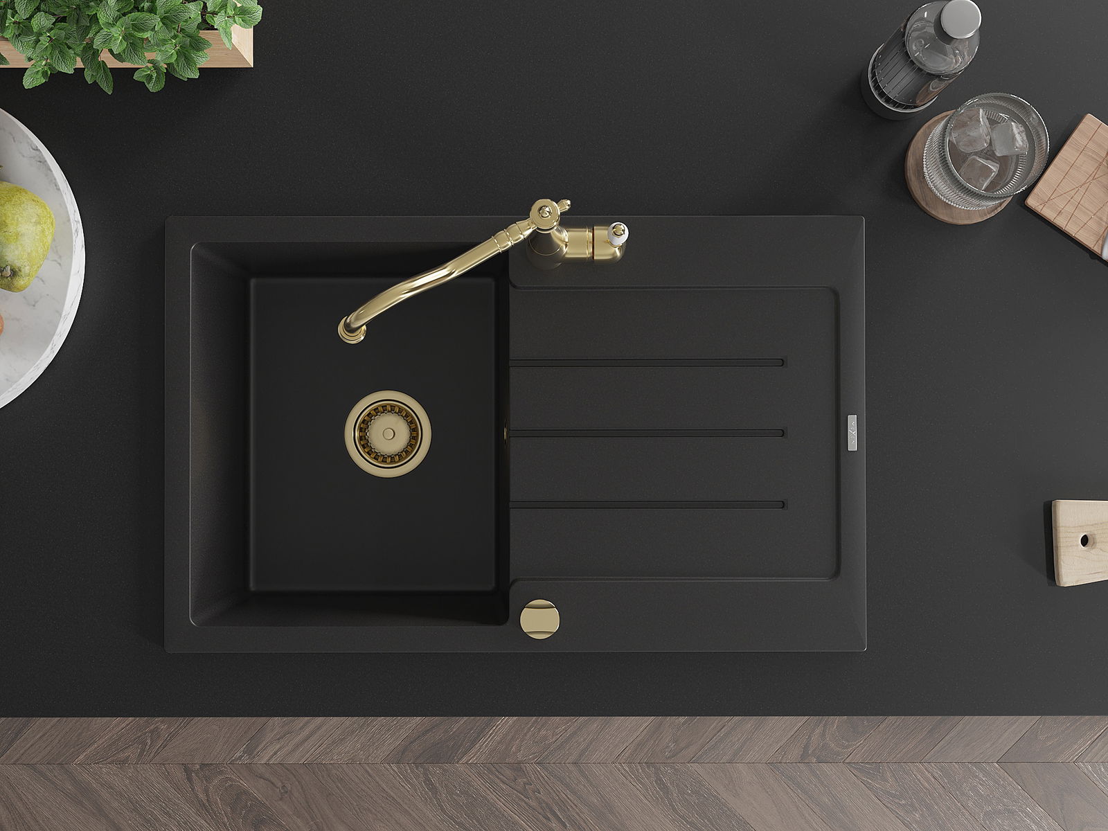 Mexen Bruno νεροχύτης γρανίτης 1-διαμερίσματος με αποστράγγιση και