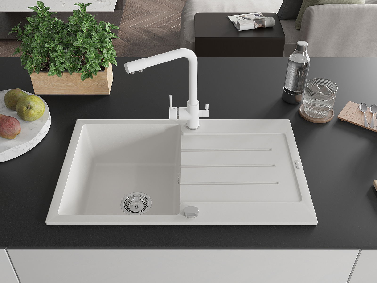 Η επιλογή ενός νεροχύτη με στραγγιστήρι είναι μια πρακτική λύση που επιτρέπει να τοποθετήσετε τα πλυμένα πιάτα ή τα λαχανικά και τα φρούτα. Το στραγγιστήρι διευκολύνει το καθημερινό μαγείρεμα και βοηθά στη διατήρηση της τάξης στην κουζίνα.