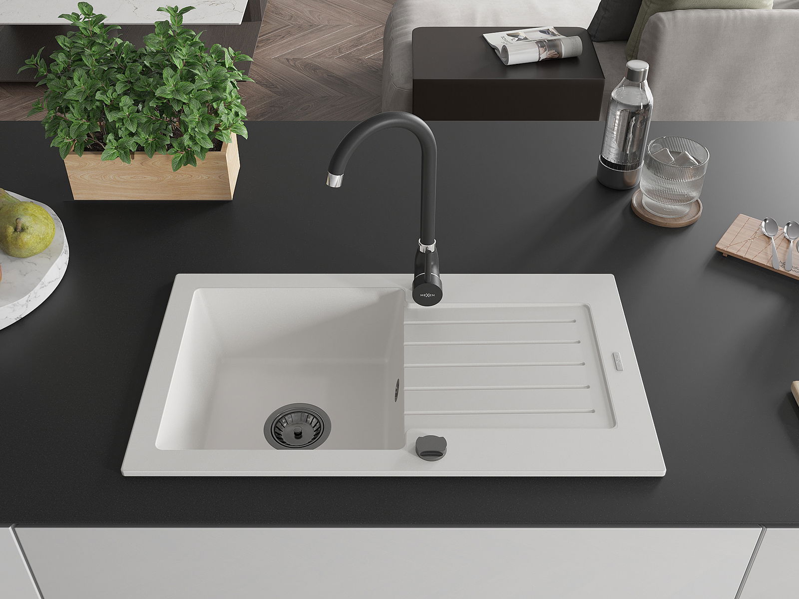 Mexen Pablo νεροχύτης γρανίτης μονός με στραγγιστήρα και μπαταρία