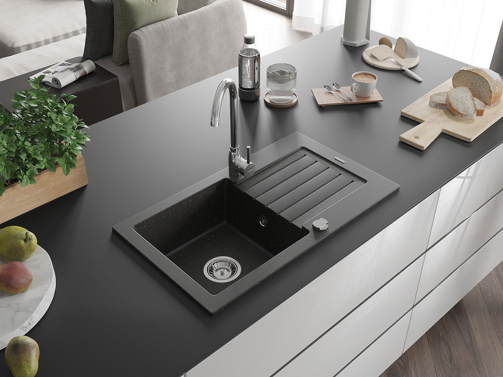 Mexen Pablo νεροχύτης γρανιτένιος μονός με στραγγιστήριο και μπαταρία