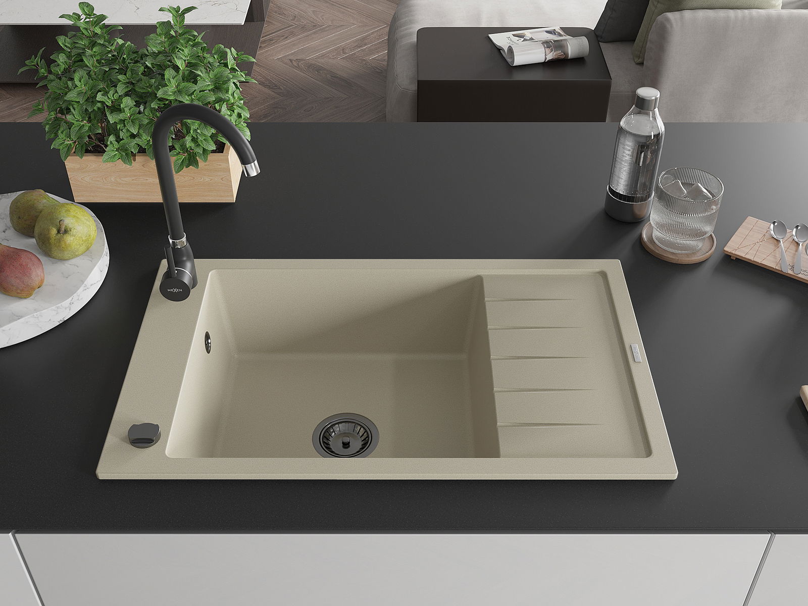 Mexen Elias νεροχύτης γρανίτης 1-διαμερίσματος με αποστραγγιστήρα και